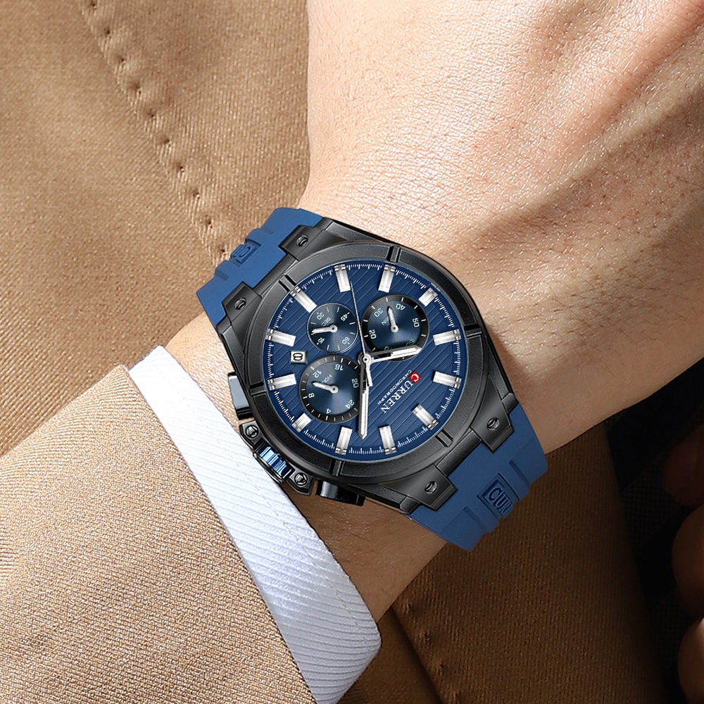 Relógio Masculino CURREN Genuíno Autêntico Nova Pulseira De Silicone Esporte Retrô Cronógrafo Mãos Luminosas Mostrador D