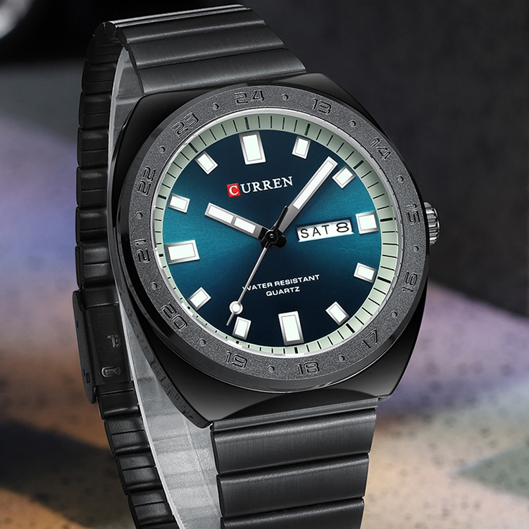Relógio Masculino CURREN Original Genuíno Aço Inoxidável Calendário Luminoso Mostrador Exclusivo Moda Negócios Esportes