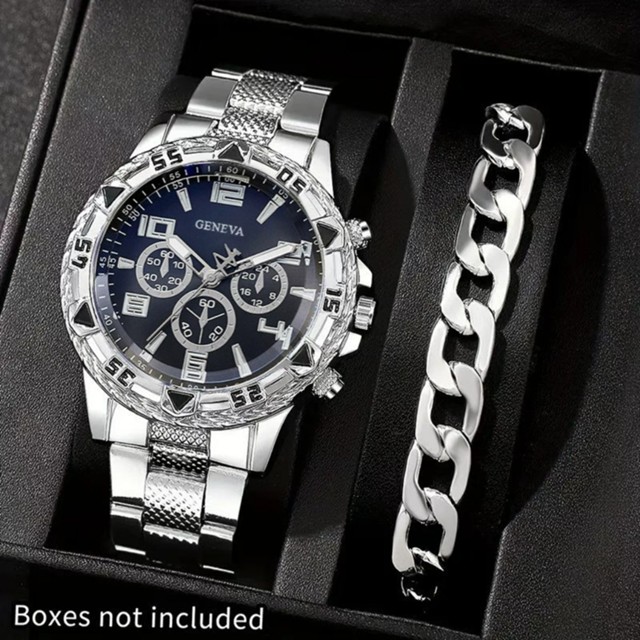 Catalogado na subcategoria Conjuntos e Pares de Relógios (de Relógios), Relógio masculino de negócios com vidro de cristal azul e pulseira cronógrafo de quartzo com pulseira de aço inoxidável está à venda na Shopee Brasil por R$ 30,99 (50% de desconto sobre o preço original de R$ 61,98). Nota 4.4 de 5 na Shopee e 93 unidades vendidas, este produto se destaca pelo excelente custo-benefício.