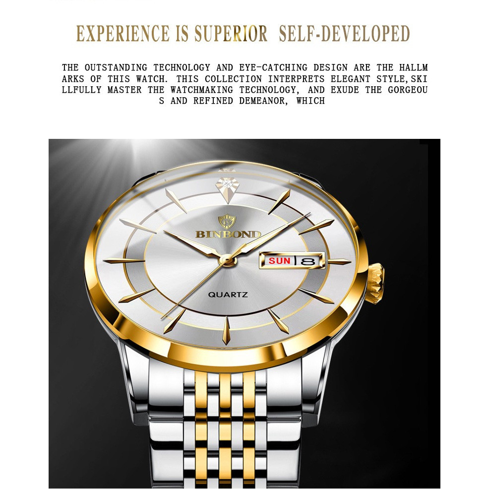 Relógio Masculino De Quartzo BINBOND Em Aço Inoxidável Com Fivela E Resistente À Água 2077 HX DBX