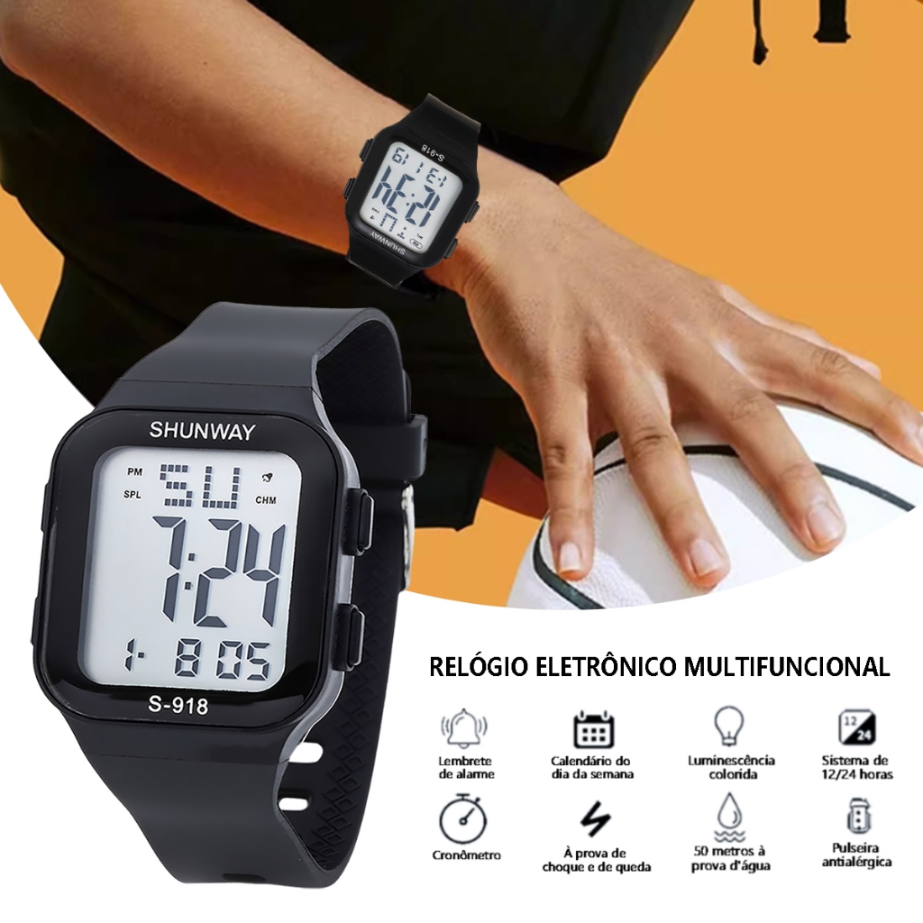Bem-vindo à 💎 loja de relógios 💎 Loja local brasileira (envio em 24 horas)🚀🚀🚀 💖Siga ou compartilhe nossa loja para obter descontos extras! 🌟 Por que nos escolher? ⭐Loja profissional vende apenas relógios. ⭐ +5.000 clientes satisfeitos em nossa loja! ⭐ Produtos testados e aprovados antes do envio! -------------------------------- 🌟 DESTAQUES DO PRODUTO ✅ Design Esportivo Moderno - Mostrador digital extragrande, ideal para uso casual e esportivo ✅ Resistência à Água 50M - Certificado para natação, chuva e atividades aquáticas (com pressionamento subaquático) ✅ Materiais Premium - Pulseira em TPU antialérgica + caixa em ABS resistente a impactos ✅ Visibilidade Noturna - Luz fria de alta intensidade para ambientes escuros -------------------------------- 🛒 POR QUE ESCOLHER O SHUNWAY S-918? ✔ Versatilidade Completa - Gerencie treinos, compromissos e rotinas com um único dispositivo ✔ Durabilidade Comprovada - Resistente a quedas, choques e água (50m de profundidade) ✔ Precisão Garantida - Movimento eletrônico com bateria importada para exatidão ✔ Conforto Superior - Pulseira ajustável e hipoalergênica para uso prolongado ✔ Presente Perfeito - Design unissex que combina com qualquer estilo -------------------------------- 📏 ESPECIFICAÇÕES TÉCNICAS 🔹Modelo: S-918 🔹Dimensões: 250mm (comprimento) x 39mm (diâmetro) x 22mm (espessura) 🔹Materiais: 🔹Pulseira: TPU flexível 🔹Caixa: ABS resistente 🔹Traseira: Aço inoxidável 🔹Espelho: Acrílico anti-riscos 🔹Funções: 🔹Hora, data, dia da semana 🔹Cronômetro (1/100 seg.) 🔹2 tipos de alarme (diário/hora em hora) 🔹Luz fria noturna 🔹Resistência: 50m (WR 50M) com pressionamento subaquático 🔹Bateria: Inclusa (importada) - Longa duração -------------------------------- ❓ PERGUNTAS FREQUENTES 🔹Q: O relógio já vem com bateria instalada? 🔹R: Sim! Inclui bateria importada pronta para uso. 🔹Q: Posso usar no mar ou piscina? 🔹R: Sim! A certificação 50M permite natação e mergulho raso (evite pressionar botões abaixo de 1m). 🔹Q: Como ativar a luz noturna? 🔹R: Pressione a Tecla A (luz fria) para iluminação instantânea. 🔹Q: A pulseira causa alergia? 🔹R: Não! O material TPU é hipoalergênico e testado dermatologicamente. -------------------------------- ⚠️ DICAS DE USO Para vedação à prova d’água: Verifique se a tampa traseira está bem fechada antes de mergulhar. Limpeza pós-mar: Lave com água doce para evitar corrosão. Economize bateria: Use a luz fria apenas quando necessário. Ajuste de pulseira: Utilize os furos extras para melhor adaptação ao pulso. -------------------------------- 🚀 OFERTA EXCLUSIVA SHOPEE ✈ Envio Rápido – Postagem em até 24h após a compra! 💰 Cupom de Desconto – Siga nossa loja e ganhe promoções . ⭐ Garantia de Satisfação – Produto inspecionado antes do envio. 🔒 GARANTIA DE 7 DIAS para trocas! Sem burocracia! #RelógioEsportivo50M#RelógioMasculinoDurável#RelógioCronômetroPreciso#RelógioÀProvaDÁgua#RelógioLongaBateria#RelógioFutebol#RelógioPraia#RelógioCarnaval#RelógioAcademia#RelógioViagem#Parcelamento#KitRelógioComBaterias#OfertaRelâmpago#PresenteMasculino#AprovadoNoBrasil#RelógioImportado#Garantia12Meses#RelógioQueResisteAoSuor#RelógioParaCorridaDiária#PresenteParaHomemAté100Reais#Promoção24Horas#BlackFridayAntecipado#SóHojeComBateriasGrátis