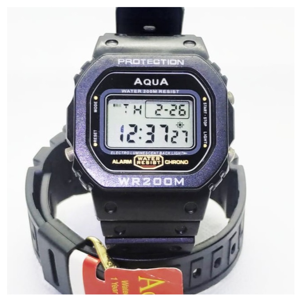 marca aqua Estrutura e pulseira Muito confortável e resistente Vidro mostrador Em resina anti-riscos Pulseira Borracha Tampa traseira Parafusada e assinada Movimento A quartzo digital Resistente à água 5 ATM Alarme horário Horário e diário Datador Sim Cronometro progressivo Sim Luz noturna Sim Comprimento total 23,0 cm Conteúdo da embalagem Relógio Aqua, manual Quantidade: 1 peça Fonte de energia: Requer baterias (cr 2016)