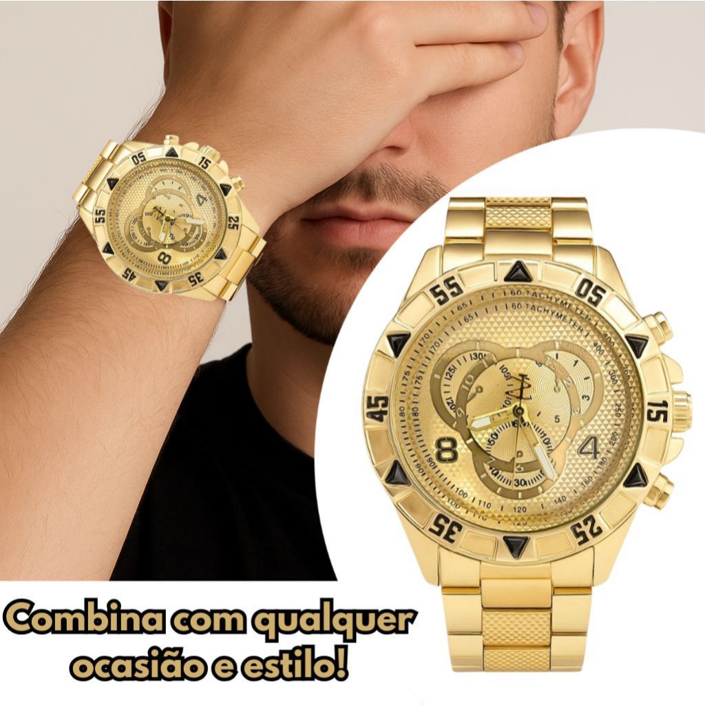 Relogio Masculino Dourado Aço Inoxidavel Original Grande Luxo
