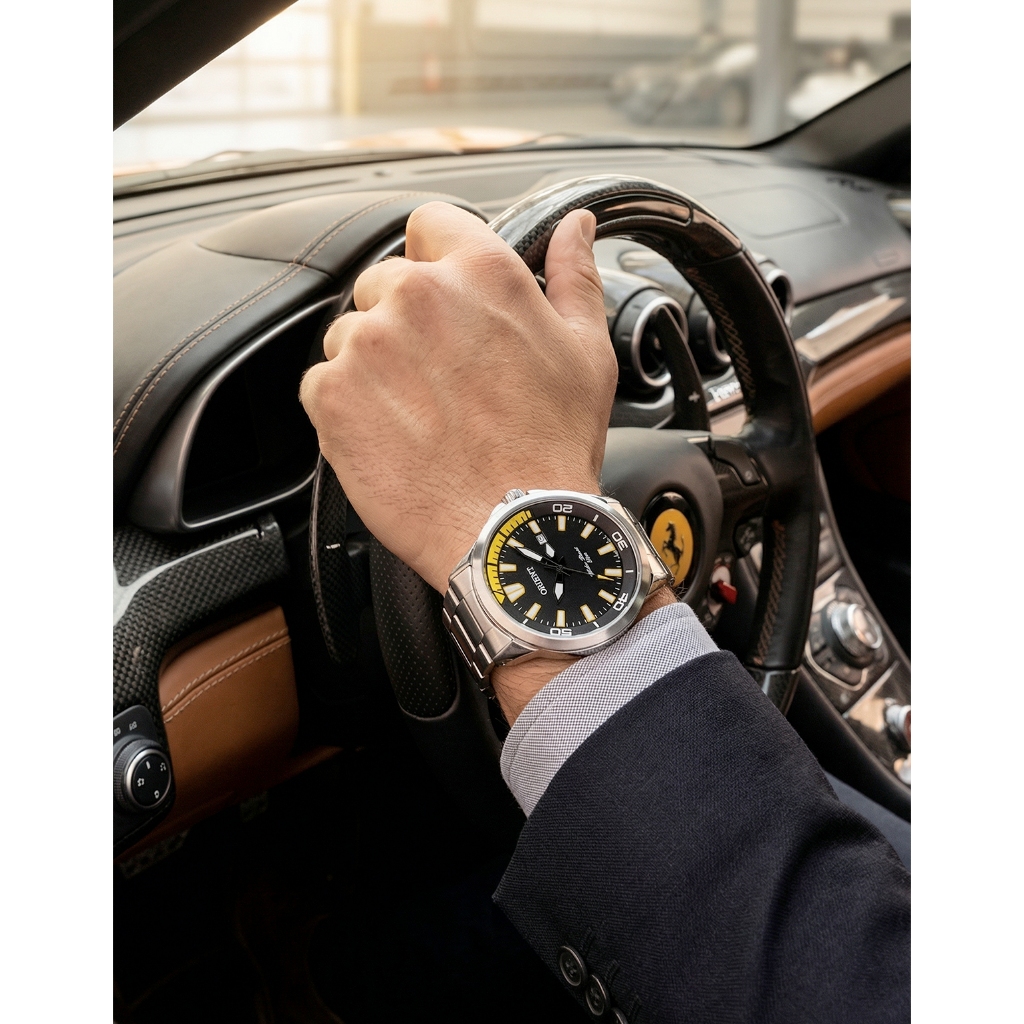 Relógio Masculino Orient Prata Visor Preto Amarelo Casual Original Prova D'água Garantia 1 ano