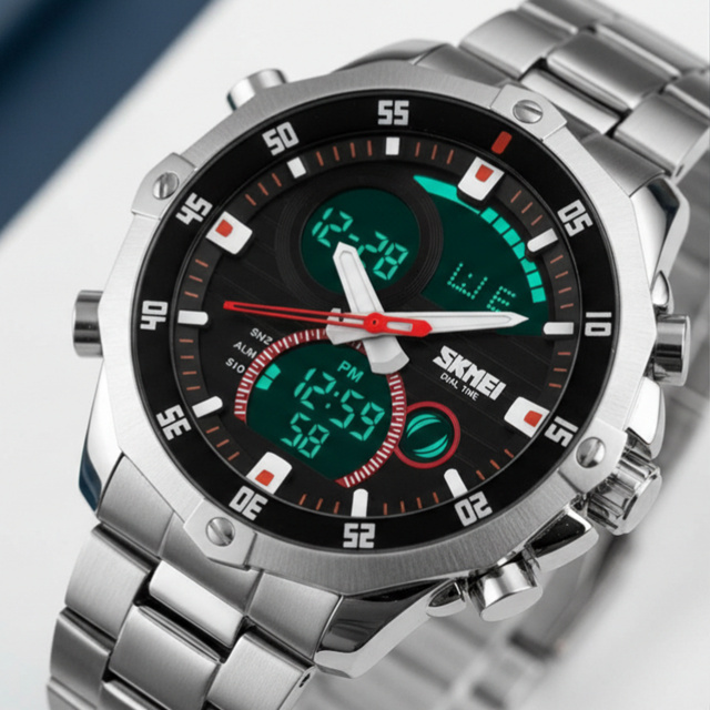 Relógio Masculino Skmei AnaDigi 1146 Prata e Preto, Original, Resistente a Agua 1 Ano de Garantia