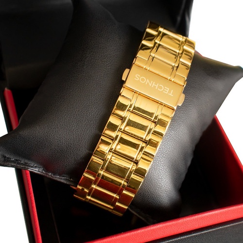 Relogio Masculino Technos Original Dourado Azul Calendario