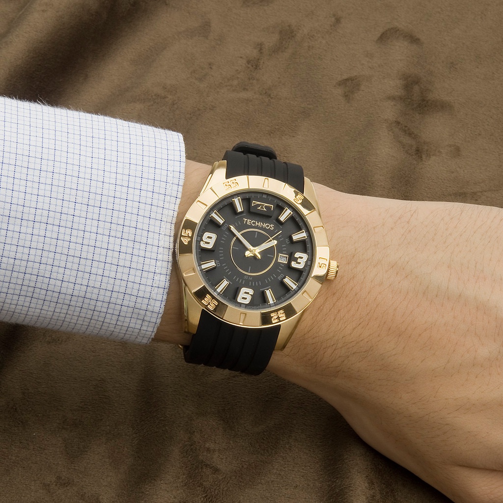 Relogio Masculino Technos Racer Dourado Silicone Preto 2115KZA/8P Original Garantia de 1 Ano Presente Esposo Homem