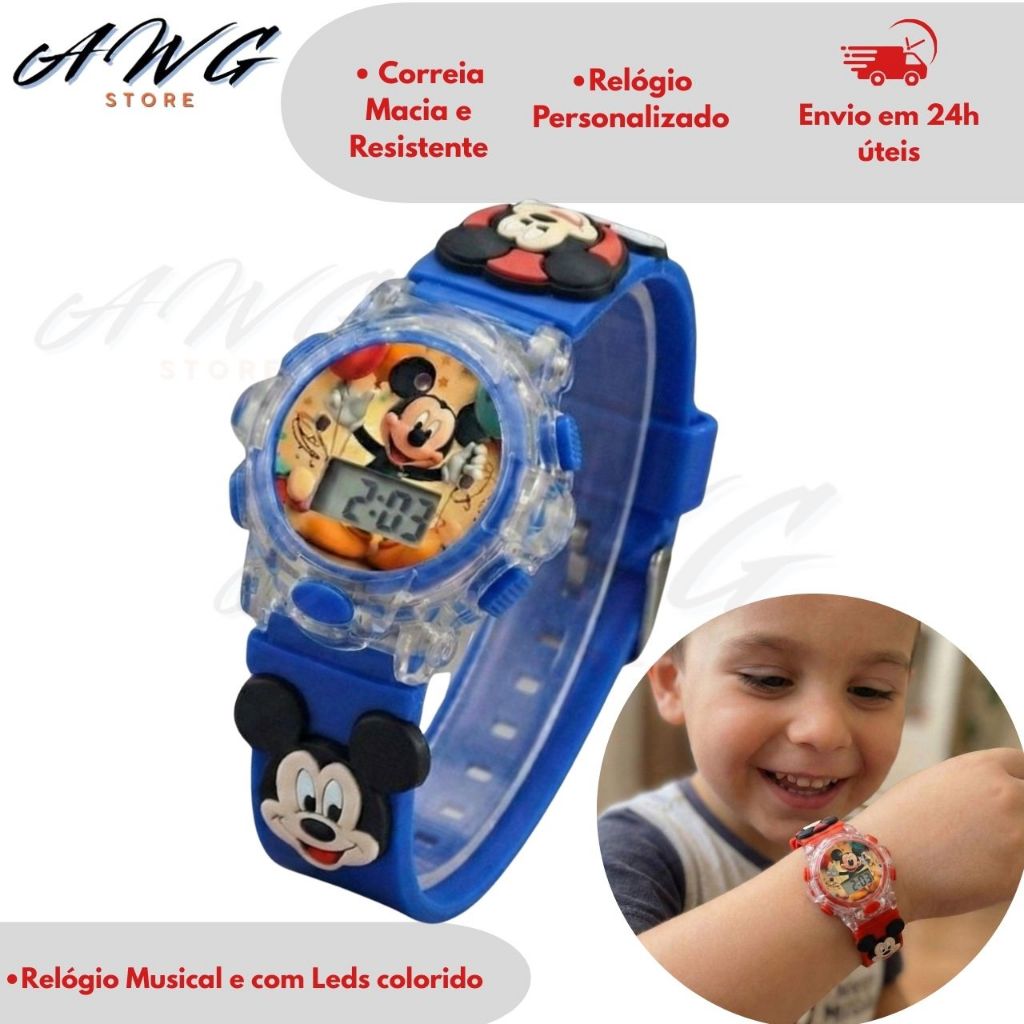 Relógio Mickey Infantil (Produto com nota fiscal) (LEIA TODA A DESCRIÇÃO) (PRODUTO ENVIADO EM CORES SORTIDAS) Relógio Infantil Musical da Mickey com LED + 2 Baterias Extras Acompanhe a magia do Mickey no pulso das crianças com este lindo Relógio Infantil Musical da Mickey! Com luzes de LED, música animada e visor digital, ele une estilo, diversão e funcionalidade em um só acessório. Feito com **pulseira de silicone macia** e visor digital, o relógio exibe **hora, data e segundos**, além de contar com **LEDs coloridos, música e tema do relógio da Mickey**. Uma escolha perfeita para quem busca um presente fofo, útil e encantador! Ideal para crianças que amam o personagem e querem um relógio divertido, confortável e fácil de usar no dia a dia. 👑 **Ficha Técnica:** ✔ **Tamanho da Pulseira:** 22cm ✔ **Material da Pulseira:** Silicone de alta qualidade – confortável e resistente ✔ **Tamanho da Caixa:** 38mm ✔ **Material da Caixa:** Plástico leve e durável ✔ **Fecho:** Fivela – fácil de ajustar ao pulso ✔ **Funções:** Hora e data ✔ **Extras:** Iluminação em LED e música ✨ **Funções dos Botões:** ➡ **Botão Superior:** Visualiza hora, data e segundos ➡ **Botão do Meio:** Ajusta hora e data (usado junto com o superior) ➡ **Botão Inferior:** Acende os LEDs e toca a música 🎁 **Itens Inclusos:** * 1 Relógio Infantil Mickey (cor sortida) 🌟 Perfeito para presentear em aniversários, datas especiais ou simplesmente para ver o sorriso de uma criança brilhar! OBSERVAÇÃO: - NÃO É A PROVA D'ÁGUA E NÃO ACOMPANHA CAIXA (SOMENTE RELOGIO ). - O desenho do mostrador pode ser diferente da imagem do anúncio, não interferindo no design e funcionalidade do relógio. PREZADOS VENDEDORES, ATENÇÃO! ESTAS IMAGENS E VÍDEO SÃO FOTOGRAFADAS E EDITADAS PELA AWG STORE E ESTÃO PROTEGIDAS POR DIREITOS AUTORAIS, CONFORME ESTABELECIDO NA LEI 9.610/98, ART. 79. PEDIMOS QUE NÃO COPIEM NOSSAS FOTOS, POIS, CASO ISSO ACONTEÇA, ENTRAREMOS COM MEDIDAS LEGAIS CASO FAÇAM CÓPIAS SEM AUTORIZAÇÃO. GRATO PELA COMPREENSÃO. ****************** TEMOS AS CORES AZUL CLARO, BRANCO, VERMELHO, PRETO, ROSA, ROSA PINK, VERDE e AZUL ESCURO. NOS ENVIE UMA MENSAGEM INFORMANDO A COR DESEJADA, CASO NÃO TENHA A COR EM ESTOQUE, ESNVIAREMOS A COR SORTIDA******************* Garantia: Este produto possui garantia de *30 dias* contra defeitos de fabricação (NÃO ESTA NA COBERTURA DA GARANTIA A MÁ UTILIZAÇÃO DO PRODUTO) a partir do recebimento. Para acionar a garantia será necessário enviar o produto de volta junto com suas embalagens recebidas, por isso é de suma importância guardar e conservar as embalagens. 📢 **Seja bem-vindo(a) à nossa loja!** Aqui você encontra produtos encantadores, com qualidade e envio rápido. Priorizamos o cuidado com cada detalhe para garantir a melhor experiência pra você e sua família. 📩 **Ficou com dúvidas?** Fale com a gente no chat! Será um prazer te ajudar. 💬✨ A AWG Store trás a você o melhor do que há no mercado, facilitando sua vida em todo o seu dia a dia, nosso pensamento sempre será no seu bem estar! Esperamos por sua compra!!!