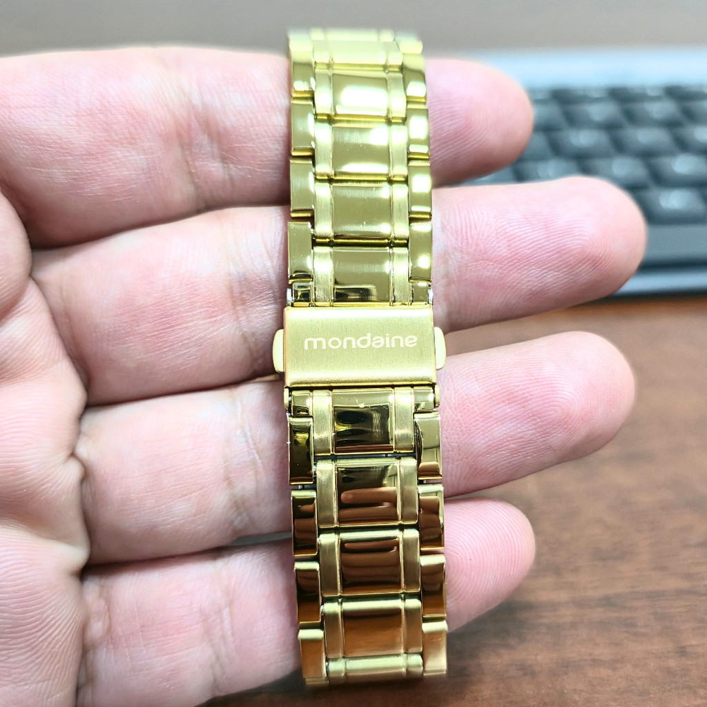 SOBRE A EMPRESA: Somos a Relógios Campana, uma empresa especializada em vendas online, revendedora autorizada das maiores marcas do mercado. Trabalhamos apenas com relógios originais com garantia de fábrica. Comprando conosco você tem a segurança que receberá seu produto nas seguintes condições: => REVENDEDOR AUTORIZADO => PRODUTO ORIGINAL => GARANTIA DO FABRICANTE => PRODUTO NOVO => EMBALAGEM ORIGINAL DO PRODUTO => MANUAL DE INSTRUÇÕES => CERTIFICADO DE GARANTIA => NOTA FISCAL => RELÓGIO A PRONTA-ENTREGA SOBRE O PRODUTO: Este relógio analógico é um modelo em caixa quadrada com aplicação de pedras no mostrador sem numeração e folheação dourada. Sua pulseira sólida de aço possui detalhes em aço escovado para deixar o visual ainda mais charmoso. Versátil para usar no dia a dia. Especificações: Marca: Mondaine Modelo: 32103LPMVDE1 Tipo de relógio: Analógico Gênero: Feminino Cor da caixa: Dourado Cor da pulseira: Dourado Estilo: Casual Alarme: Não Cronômetro: Não Calendário: Não Luz: Não Resistência à água: Sim – 3 ATM = 30 metros Tipo de fecho: Dobrável, com trava lateral Material da caixa: Aço Material da pulseira: Aço Características do vidro: Cristal Mineral Tamanho da caixa (A x L): 37 x 25 mm Espessura da caixa: 9 mm Comprimento da pulseira: 22 cm Largura da pulseira: 17 mm Lug-to-Lug: 37 mm Tampa do fundo: Pressão Peso: 74 Gramas Alimentação: Bateria Conteúdo da Embalagem: Relógio, nota fiscal, certificado garantia e manual de instruções Garantia do Fabricante: 12 meses Fabricante: Seculus da Amazônia Indústria e Com. S/A Ficou alguma dúvida? Estamos à disposição pelo campo de mensagens!