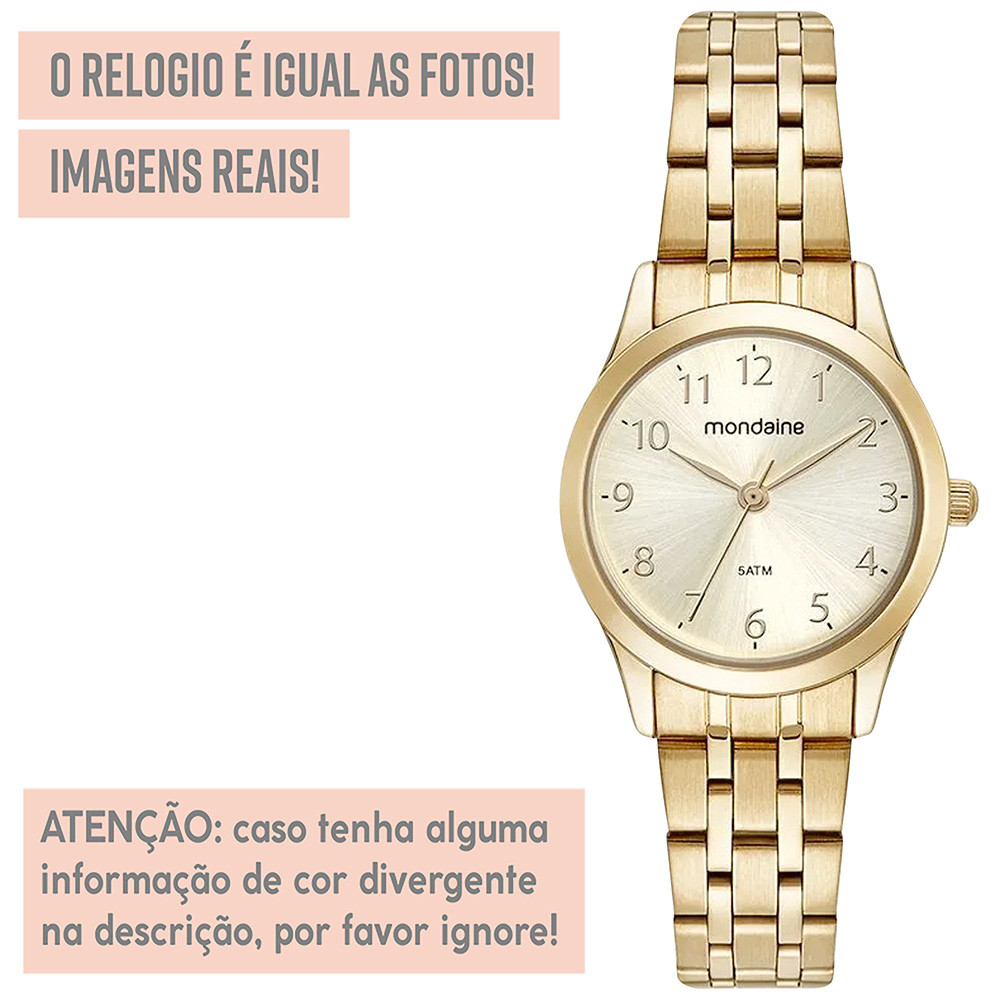Relógio Mondaine Feminino Dourado Analógico Original Top
