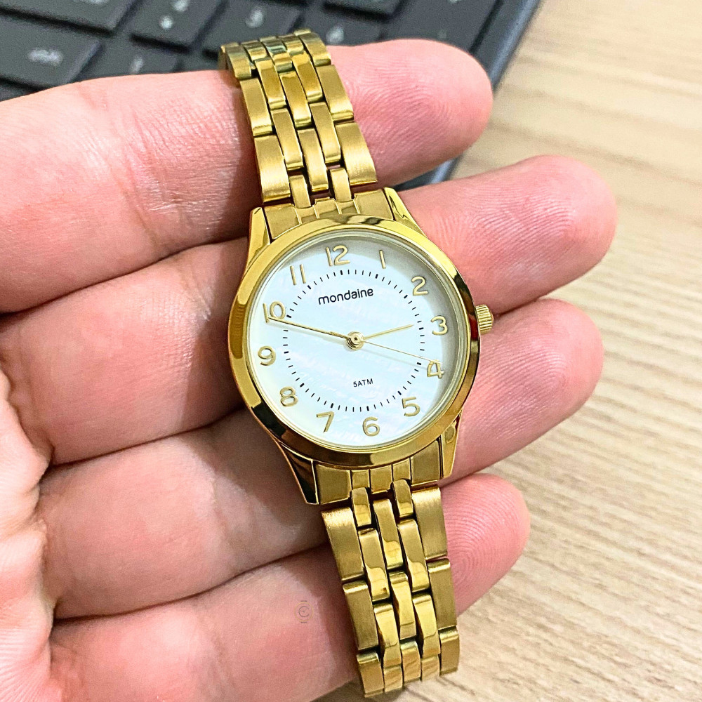 SOBRE A EMPRESA: Somos a Relógios Campana, uma empresa especializada em vendas online, revendedora autorizada das maiores marcas do mercado. Trabalhamos apenas com relógios originais com garantia de fábrica. Comprando conosco você tem a segurança que receberá seu produto nas seguintes condições: => REVENDEDOR AUTORIZADO => PRODUTO ORIGINAL => GARANTIA DO FABRICANTE => PRODUTO NOVO => EMBALAGEM ORIGINAL DO PRODUTO => MANUAL DE INSTRUÇÕES => CERTIFICADO DE GARANTIA => NOTA FISCAL => RELÓGIO A PRONTA-ENTREGA SOBRE O PRODUTO: Este kit combina delicadeza e estilo, unindo funcionalidade e beleza. O relógio dourado se destaca pelo mostrador em madrepérola com numeração completa, caixa em metal de 2,8 cm de diâmetro e pulseira em aço, criando um visual clássico e marcante. Para completar, a semijoia inclui um colar com pingente de cristal e brincos com ponto de luz, que acrescentam brilho e charme ao conjunto. Perfeito para apresentar ou complementar seu visual com um toque especial. Especificações: Marca: Mondaine Modelo: 32796LPMKDE1K1 Tipo de relógio: Analógico Gênero: Feminino Cor da caixa: Dourado Cor da pulseira: Dourado Estilo: Casual Alarme: Não Cronômetro: Não Calendário: Não Luz: Não Resistência à água: Sim – 5 ATM = 50 metros Tipo de fecho: Dobrável, com trava lateral Material da caixa: Aço Material da pulseira: Aço Características do vidro: Vidro Mineral Tamanho da caixa: 28 mm Espessura da caixa: 8 mm Comprimento da pulseira: 22 cm Largura da pulseira: 12 mm Tampa do fundo: Rosqueado Peso: 53 Gramas Alimentação: Bateria Conteúdo da Embalagem: Relógio, nota fiscal, certificado garantia e manual de instruções Garantia do Fabricante: 12 meses Fabricante: Seculus da Amazônia Indústria e Com S/A Ficou alguma dúvida? Estamos à disposição no campo de mensagens!