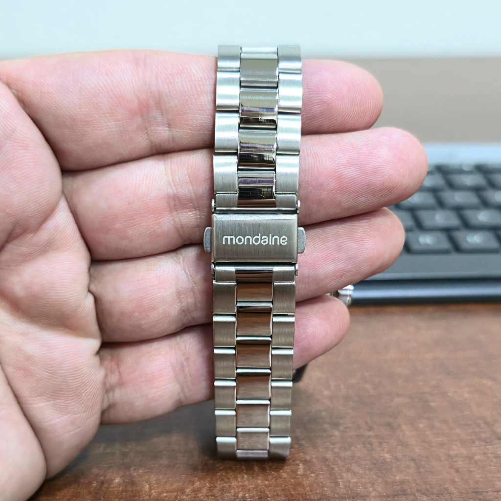 SOBRE A EMPRESA: Somos Relógios Campana, uma empresa especializada em vendas online, revendedora autorizada das maiores marcas do mercado. Trabalhamos apenas com relógios originais com garantia de fábrica. Comprando conosco você tem a segurança que receberá seu produto nas seguintes condições: => REVENDEDOR AUTORIZADO => PRODUTO ORIGINAL => GARANTIA DO FABRICANTE => PRODUTO NOVO => EMBALAGEM ORIGINAL DO PRODUTO => MANUAL DE INSTRUÇÕES => CERTIFICADO DE GARANTIA => NOTA FISCAL => RELÓGIO A PRONTA-ENTREGA SOBRE O PRODUTO: Com estilo social, o relógio traz uma pulseira em aço com fecho por acionamento lateral. Tem folheação prata, mostrador preto, marcadores e ponteiros fluorescentes para facilitar a visualização das horas. Sua caixa pequena, veste bem punhos menores a médios. Especificações: Marca: Mondaine Modelo: 32549G0MVNE1 Tipo de relógio: Analógico Gênero: Masculino Cor da caixa: Prateado Cor da pulseira: Prateado Estilo: Casual Alarme: Não Cronômetro: Não Calendário: Não Luz: Não – ponteiros e marcadores fluorescentes Resistência à água: Sim - 5 ATM = 50 metros Tipo de fecho: Dobrável, com trava lateral Material da Caixa: Aço Inoxidável Material da Pulseira: Aço Inoxidável Características do vidro: Cristal Mineral Tamanho da caixa: 42 mm Espessura da caixa: 10 mm Peso: 104 gramas Alimentação: Bateria Conteúdo da Embalagem: Relógio, nota fiscal, certificado garantia e manual de instruções Garantia do Fabricante: 12 meses Fabricante: Seculus da Amazônia Ind e Com S/A Ficou alguma dúvida? Estamos à disposição pelo campo de mensagens!