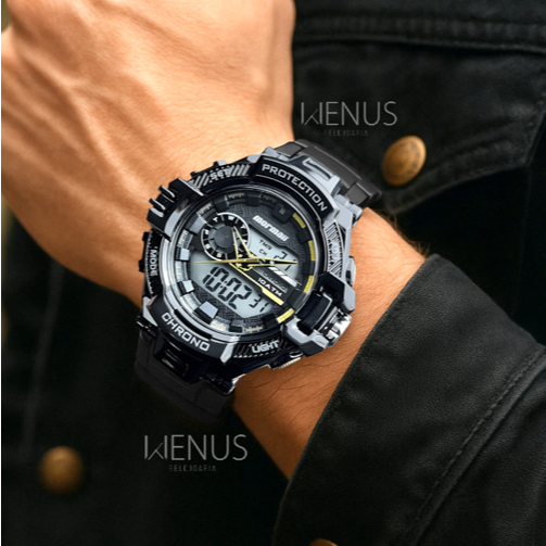 O Relógio Mormaii Action foi feito para quem vive a emoção ao máximo! Com uma caixa robusta e ultra resistente a impactos, este modelo é perfeito para os apaixonados por aventura e adrenalina. Sua resistência de 10 ATM garante desempenho excepcional em diversas situações, enquanto suas funcionalidades foram pensadas para nunca te deixar na mão, mesmo nos desafios mais extremos. Funções: Calendário; Cronógrafo; cronômetro; Alarme; Dual Time; Luz Noturna. Especificações do Relógio: Modelo Referência: MO1134AF-8D; Gênero: Masculino; Cor da Caixa: Preto; Cor da Pulseira: Preto; Material da Caixa: Polímero; Material da Pulseira: Polímero; Material do Vidro do Mostrador: Resina; Material do Fecho: Aço Inoxidável; Cor do Mostrador: Display Positivo; Tipo de Fecho: Fivela Simples. Dimensões: Espessura Caixa: 17mm; Diâmetro Caixa Com a Coroa: 53mm; Diâmetro Caixa Sem a Coroa: 50.1mm; Diâmetro Visor: 33.1mm; Largura Pulseira: 19.6mm; Largura Pulseira Base: 25.8mm; Circunferência da Pulseira: 19cm; Circunferência Pulseira com a caixa: 26cm; Peso sem a embalagem: 64g; Peso da caixa com relógio: 170g; Fundo do relógio: Parafusado. Conteúdo da Embalagem: 1 Relógio Mormaii Original; 1 Certificado de Garantia de Fábrica (1 ano); 1 Caixa Original Mormaii. Perguntas Frequentes: Somos a Loja Oficial da Relojoaria Wenus; Acompanha Nota Fiscal; Pronta Entrega Disponível; Não Possui Catraca Giratória; Possui Luz Noturna na cor Verde; Nossos Clientes contam com uma equipe de especialistas altamente qualificados para atender todas as suas necessidades. Resistência à Água - 10 ATM: Adequado para a maioria dos desportos aquáticos como a vela, o mergulho e a natação em águas pouco profundas. Não adequado para mergulho com ar comprimido. Atenção e Cuidados Não usar o relógio durante o banho, pois os produtos que são utilizados durante o banho podem comprometer a vedação e a qualidade do seu relógio. Certifique-se de que a coroa está totalmente encaixada antes do contato com a água. Nunca pressione botões ou ajuste a coroa enquanto o relógio estiver molhado ou em contato com à água. Após exposição à água salgada, enxágue o relógio em água doce e seque-o completamente. Não exponha o relógio à água quente ou morna, pois isso pode afetar a vedação e reduzir sua resistência à água. Seja na terra, na água ou onde a aventura te levar, o Mormaii Action é o companheiro ideal para quem não tem medo de desafios. Com resistência, tecnologia e um design imponente, ele está pronto para encarar qualquer situação ao seu lado. Esteja sempre preparado para a próxima aventura! Garantia de fábrica: 12 meses