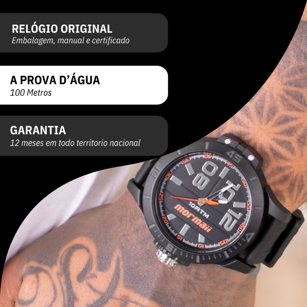 | Relógio Mormaii Masculino Analógico Preto Original À Prova D'Água P... este produto | R$ 199,00 | 23% | 4.8/5 | 3 |
