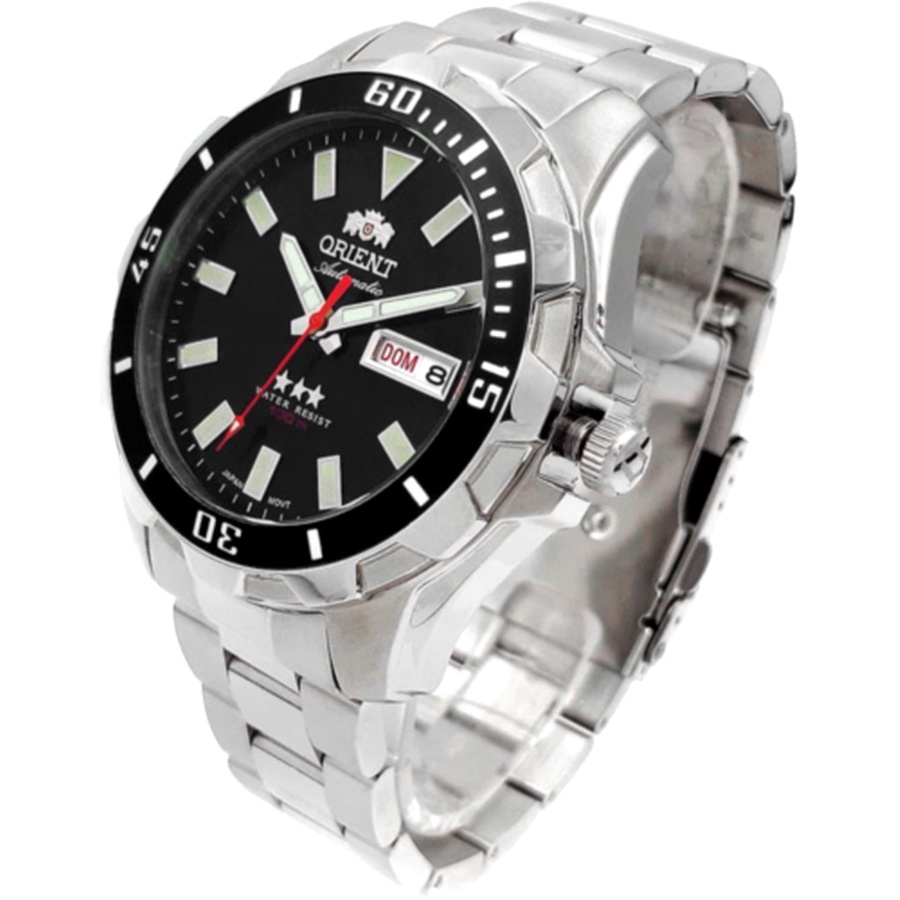 Relógio de PulsoOrient AutomaticCaixa em Aço InoxPulseira em Aço InoxMáquina JaponesaCatraca (Bisel) GiratóriaCoroa RosqueadaAcerto de Hora e dia do MêsCalendárioBotão : Altera Dia da SemanaPonteiros FosforescentesIndicador de horas Fosforescentes10 Atm - 100 Metros Prova d´águaFundo RosqueadoFecho DuploLargura da Caixa: 47mmLargura da Caixa com Coroa: 49.2mmEspessura da Caixa: 14,8mmLargura da Pulseira junto a caixa : 22mmLargura da Pulseira : 20mm