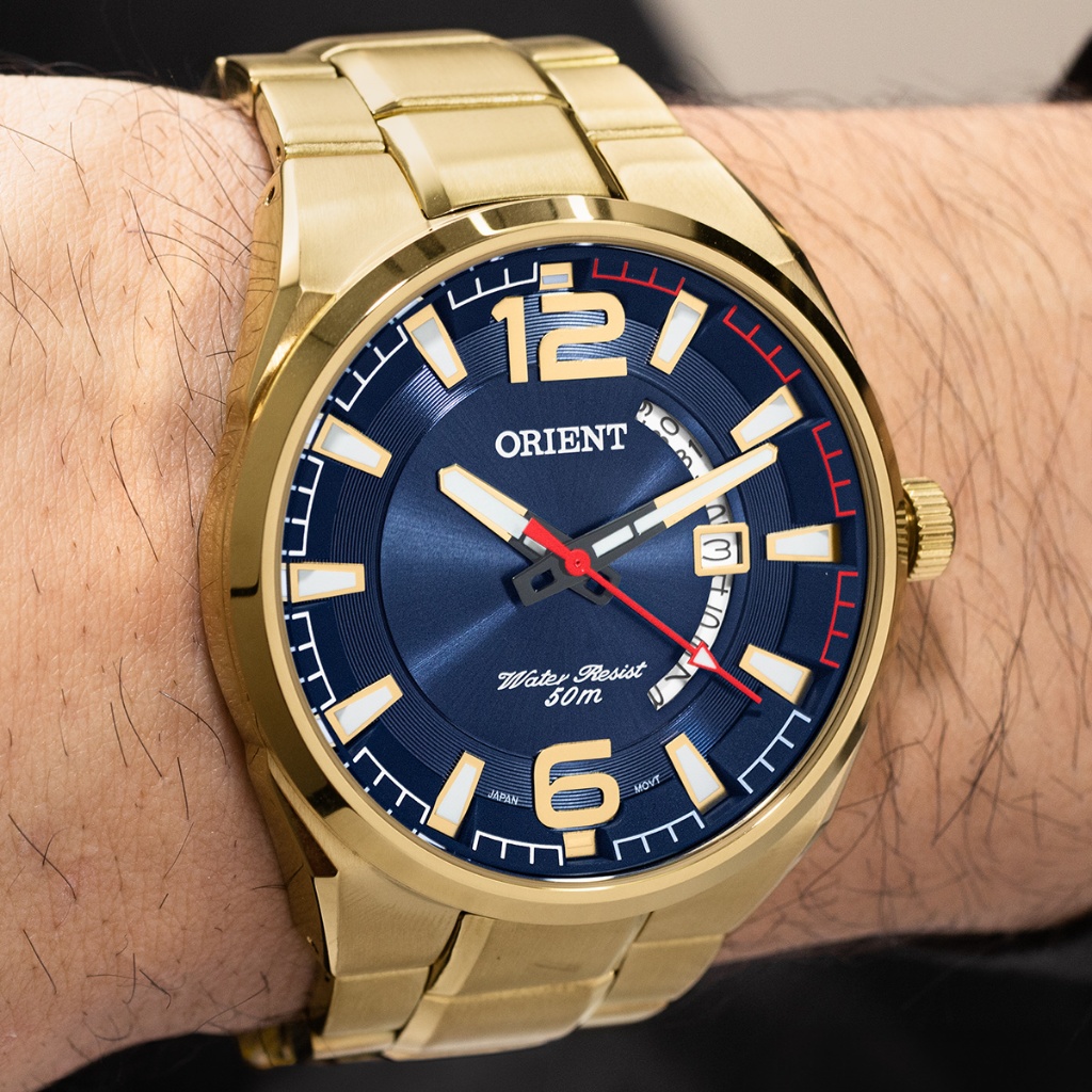 Compre o Relógio Orient Masculino Neo Sports MGSS1159D2KX na Eclock, a maior loja de relógios do Brasil. Vamos conhecer um pouco mais sobre o produto? Possui mecanismo Analógico, a pulseira é na cor Dourado, fabricada em Aço, com 26 cm de comprimento e possui Fecho Dobrável com Dois Botões. A Caixa (peça onde fica o mostrador) é fabricada em Aço, mede 4,4 cm de diâmetro, sem considerar a coroa, e 0,9 cm de espessura, o que é considerado tamanho Médio para relógios do gênero Masculino. O Relógio Orient Masculino Neo Sports MGSS1159D2KX tem nível de resistência à água especificado em 5 ATM. Com relação as funções adicionais do relógio: possui Calendário Analógico com Data. É Fabricado por Orient Relógios da Amazônia LTDA. CNPJ:05.830.195/0001-10 e tem Garantia de 1 Ano com o Fornecedor.