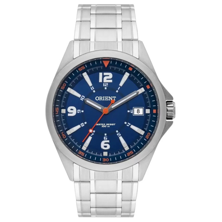 RELÓGIO ORIENT MBSS1270 D2SX Linha: Sport Garantia: 12 meses em toda rede autorizada Orient Conteúdo da embalagem: 1 relógio, manual, certificado de garantia e nota fiscal Fornecedor: Orient Relógios da Amazônia Ltda CaracterísticasVidro: Cristal MineralMaterial da caixa: AçoCor da caixa: PrataMaterial da pulseira: AçoCor da pulseira: PrataDiâmetro da caixa: 4,5 cmCor do mostrador: AzulMecanismo: QuartzFunções: Analógico / CalendárioResistência à água 10 ATM