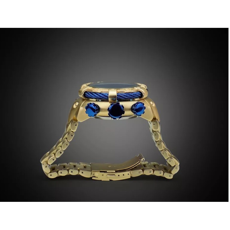 Relogio pesado Masculino Grande Dourado Azul Invi frete grátis