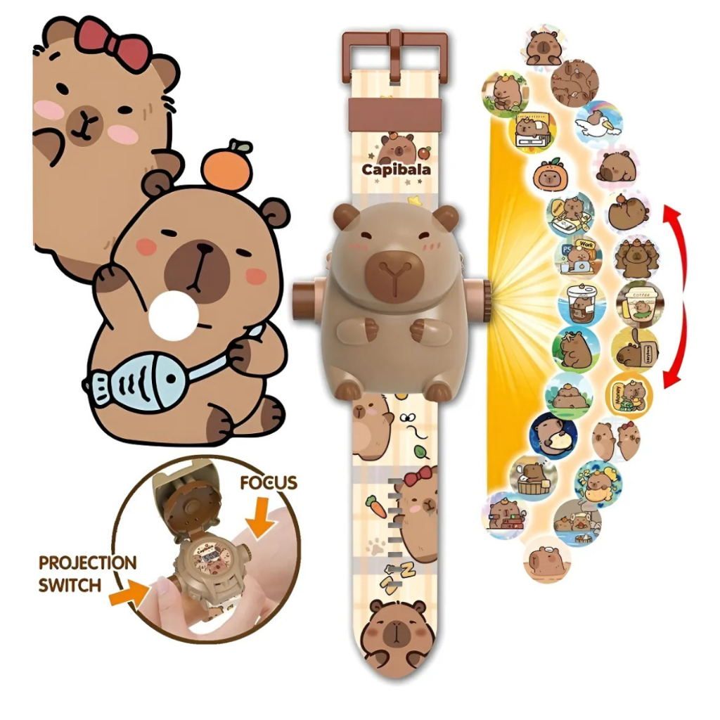 Relógio Projetor Capivara Digital Infantil 24 Imagens Marrom