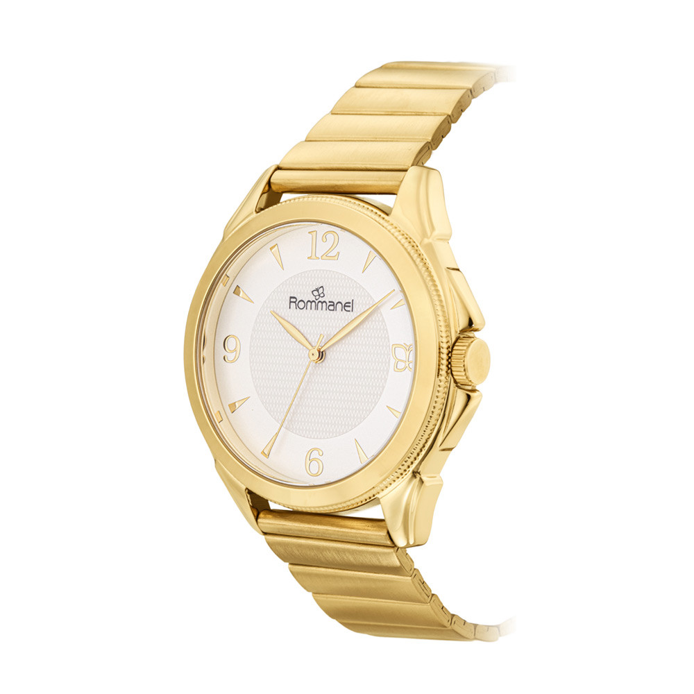 RELÓGIO ANALÓGICO SOCIAL DOURADO ROMMANEL ORIGINAL 650116 O Relógio Social Rommanel é a tradução da elegância clássica. Com caixa redonda e um delicado mostrador branco adornado com uma borboleta, este modelo une a precisão do mecanismo analógico com o luxo do acabamento dourado. Sua pulseira em aço com fecho de trava de pressão oferece segurança e um ajuste refinado ao pulso. Projetado para mulheres que não abrem mão da sofisticação, possui vidro de cristal mineral e resistência à água de até 50 metros (5 ATM), sendo o acessório ideal para eventos sociais ou para elevar o estilo do dia a dia. --- DETALHES TÉCNICOS --- Mecanismo: Analógico (Ponteiros) Design: Mostrador branco com 1 borboleta e números dourados Material da Pulseira: Aço com Fecho Trava de Pressão Medida da Caixa: 38mm x 38mm x 10mm Comprimento: 24 cm (Ajustável no pulso) Resistência: 50 metros (5 ATM) Estilos: Social, Clássico, Feminino, Elegante, Atemporal --- QUALIDADE E SEGURANÇA --- Produto Hipoalergênico (Padrão Rommanel) Vidro em Cristal Mineral (Resistente a riscos) Garantia de 1 ano contra defeitos de fabricação Acompanha Estojo Oficial e Certificado de Autenticidade --- MIMO ESPECIAL MARISGLAM --- Para tornar sua experiência ainda mais especial, sua compra na MarisGlam acompanha um brinde exclusivo preparado com muito carinho por nossa equipe! --- SOBRE A COMPRA --- Produto 100% Original Rommanel Envio imediato e seguro em embalagem oficial