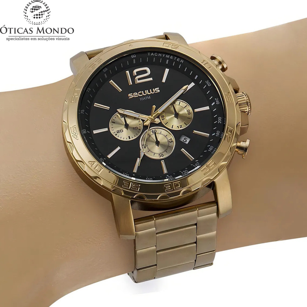 | Relógio Seculus Masculino Cronógrafo Casual Aço Dourado Original este produto | R$ 528,00 | 12% | 4.0/5 | — |