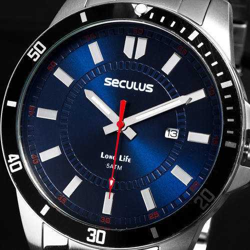 Compre o Relógio Seculus Masculino Long Life 44203G0SVNA1 na Eclock, a maior loja de relógios do Brasil! Vamos conhecer um pouco mais sobre o produto? Possui mecanismo Analógico, a pulseira é na cor Prata, fabricada em Aço, com 25 cm de comprimento e possui Fecho Dobrável com Trava. A Caixa (peça onde fica o mostrador) é fabricada em Aço, possui fundo do tipo Rosqueado, mede 4,5 cm de diâmetro, sem considerar a coroa, e 1,0 cm de espessura, o que é considerado tamanho Médio para relógios do gênero Masculino. O Relógio Seculus Masculino Long Life 44203G0SVNA1 tem nível de resistência à água especificado em 5 ATM. Com relação as funções adicionais do relógio: possui Calendário Analógico com Data e Marcadores com Illuminator. É Fabricado por Seculus da Amazônia Indústria e Comércio SA. CNPJ: 34.516.088/0001-10 e tem Garantia de 2 Anos com o Fornecedor.
