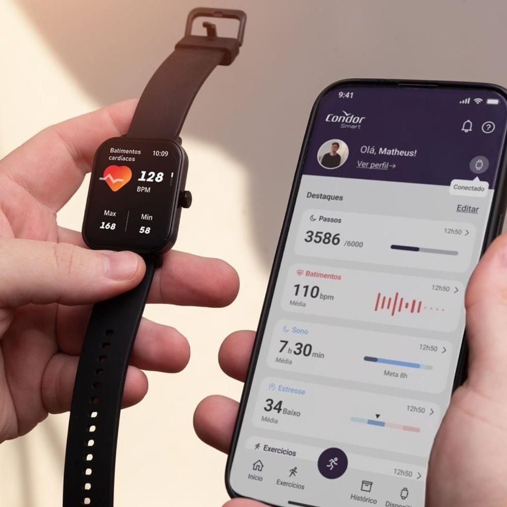 O Relógio Condor Smart COSMART1AA/8P une tecnologia e estilo em um smartwatch moderno e versátil. Com mais de 100 esportes, notificações inteligentes e chamadas via Bluetooth, é ideal para sua rotina. Possui pulseira em silicone confortável, caixa em resina resistente e design unissex. Perfeito para quem busca praticidade, conectividade e estilo no dia a dia. CARACTERÍSTICAS: - Smartwatch Condor com +100 esportes e chamadas via Bluetooth - Caixa em resina e pulseira em silicone na cor preta - Resistência à água de 1 ATM (respingos leves) - Funções: notificações, calendário, cronômetro, alarme e luz de LED ESPECIFICAÇÕES TÉCNICAS: Marca: Condor Referência/SKU: COSMART1AA/8P Formato da Caixa: Quadrado Gênero: Unissex Cor: Preto Mecanismo: Smartwatch Material da Pulseira: Silicone Material da Caixa: Resina Material do Vidro: Cristal Mineral Pulseira Ajustável: Sim Nível de Resistência à Água: 1 ATM Funções: +100 Esportes, Chamadas Bluetooth, Notificações, Cronômetro Digital, Calendário Digital, Um Alarme Diário, Luz de LED DIMENSÕES DO PRODUTO: Comprimento do Relógio: 27 cm Caixa: 4,4 cm (Altura) x 3,6 cm (Largura) Espessura da Caixa: 1,1 cm Tamanho: Médio DICA DE USO: Conecte seu Condor Smart com a Alexa para checar notificações, alarmes e compromissos da sua rotina, deixando sua casa inteligente ainda mais prática. DÚVIDAS FREQUENTES: - O relógio é à prova d’água? Ele possui resistência 1 ATM, ou seja, suporta respingos leves de água, mas não deve ser usado em banho, natação ou mergulho. - Posso atender chamadas diretamente no relógio? Sim! O Condor Smart permite receber e realizar chamadas via conexão Bluetooth com seu celular. - O relógio é compatível com qualquer smartphone? Funciona perfeitamente com celulares Android e iOS que tenham Bluetooth e app de sincronização compatível. - A pulseira pode ser trocada? Sim, a pulseira é de silicone ajustável e pode ser substituída por outra compatível, garantindo conforto e estilo. ITENS INCLUSOS: - 01 Relógio Smartwatch Condor COSMART1AA/8P Preto Unissex Bluetooth Chamadas +100 Esportes IMAGENS MERAMENTE ILUSTRATIVAS. O prazo de devolução, conforme o artigo 49 do CDC (Código de Defesa do Consumidor), é de 7 dias corridos a partir do recebimento do produto. Recomenda-se que a devolução seja feita com o produto em perfeitas condições, sem danos ou marcas de uso, utilizando uma embalagem protetora original. A ausência dessa embalagem ou danos a ela podem resultar na recusa da devolução. A Garantia Legal é de 90 dias, conforme o CDC - Código de Defesa do Consumidor. Após esse prazo, passa a vigorar a Garantia Contratual, que é tratada diretamente pelo FABRICANTE do item e segue as regras estipuladas pelo próprio. A Garantia Total (garantia legal + garantia contratual) é exibida no campo correspondente deste anúncio. Atente-se à responsabilidade de cada parte e lembre-se que estamos sempre a disposição para esclarecimentos em nosso SAC.