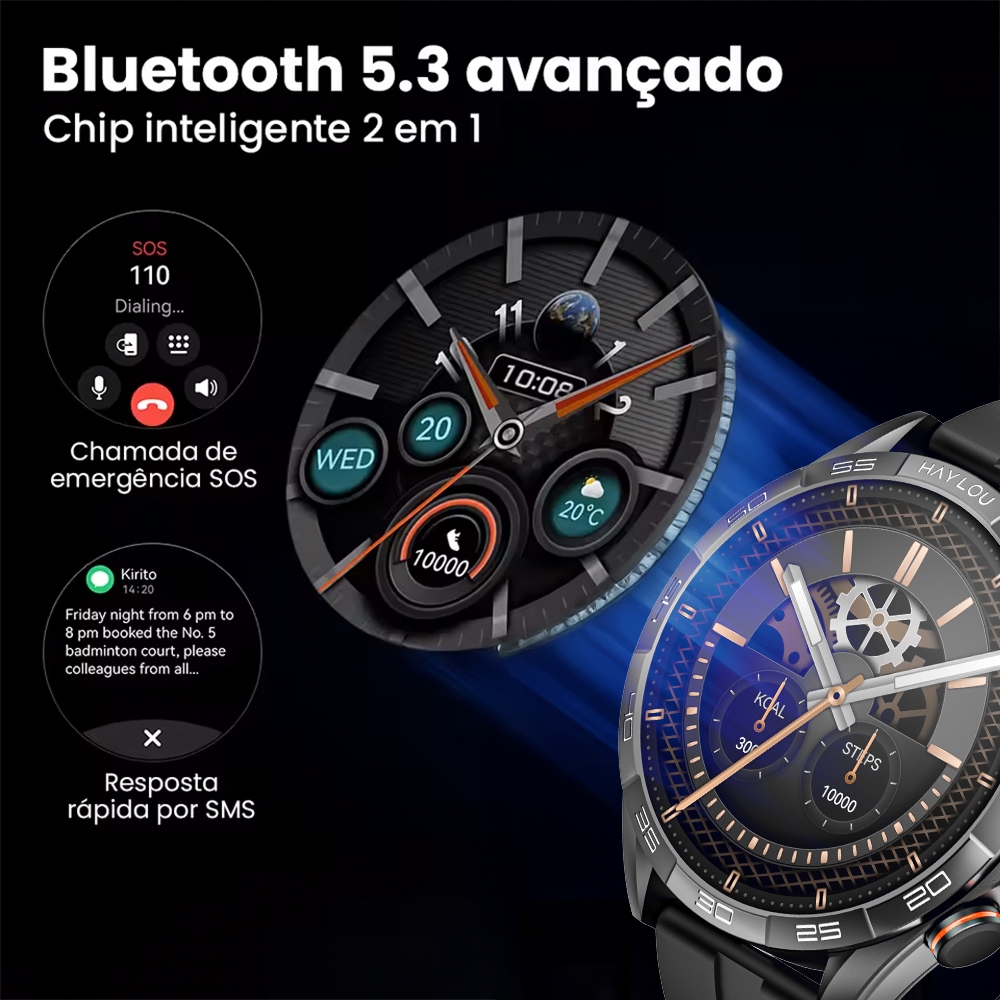 Smartwatch Haylou Solar 5 BT 5.3 Tela 1,58 pol. Preto, Design Moderno e Elegante Compatível Android e Ios 1. Tela AMOLED de Alta Definição O Haylou Solar 5 conta com uma tela AMOLED de 1,58 polegadas e resolução 480x480, garantindo cores vibrantes e nitidez incomparável. Ideal para visualizar notificações, acompanhar rotinas e personalizar o display com facilidade. 2. Bateria Duradoura de 360mAh Com uma bateria de 360mAh, o smartwatch oferece uma autonomia prolongada, perfeito para acompanhar suas atividades diárias sem necessidade de recargas frequentes. Funcionalidade e praticidade no seu pulso. 3. Conectividade Bluetooth 5.3 de Alto Desempenho A versão 5.3 do Bluetooth proporciona conexões rápidas, estáveis e eficientes. Perfeito para sincronizar com seus dispositivos Android e iOS, garantindo uma experiência fluida e confiável. 4. Compatibilidade com Android e iOS Compatível com Android 9.0 e superior e iOS 9.0 e superior, o Haylou Solar 5 é versátil e funciona perfeitamente com a maioria dos dispositivos modernos. Um acessório indispensável para o seu dia a dia. 5. Design Moderno e Elegante Com acabamento preto sofisticado e um display de fácil personalização, o Haylou Solar 5 combina tecnologia avançada com estilo, tornando-o ideal para qualquer ocasião. Garantia 90 dias.
