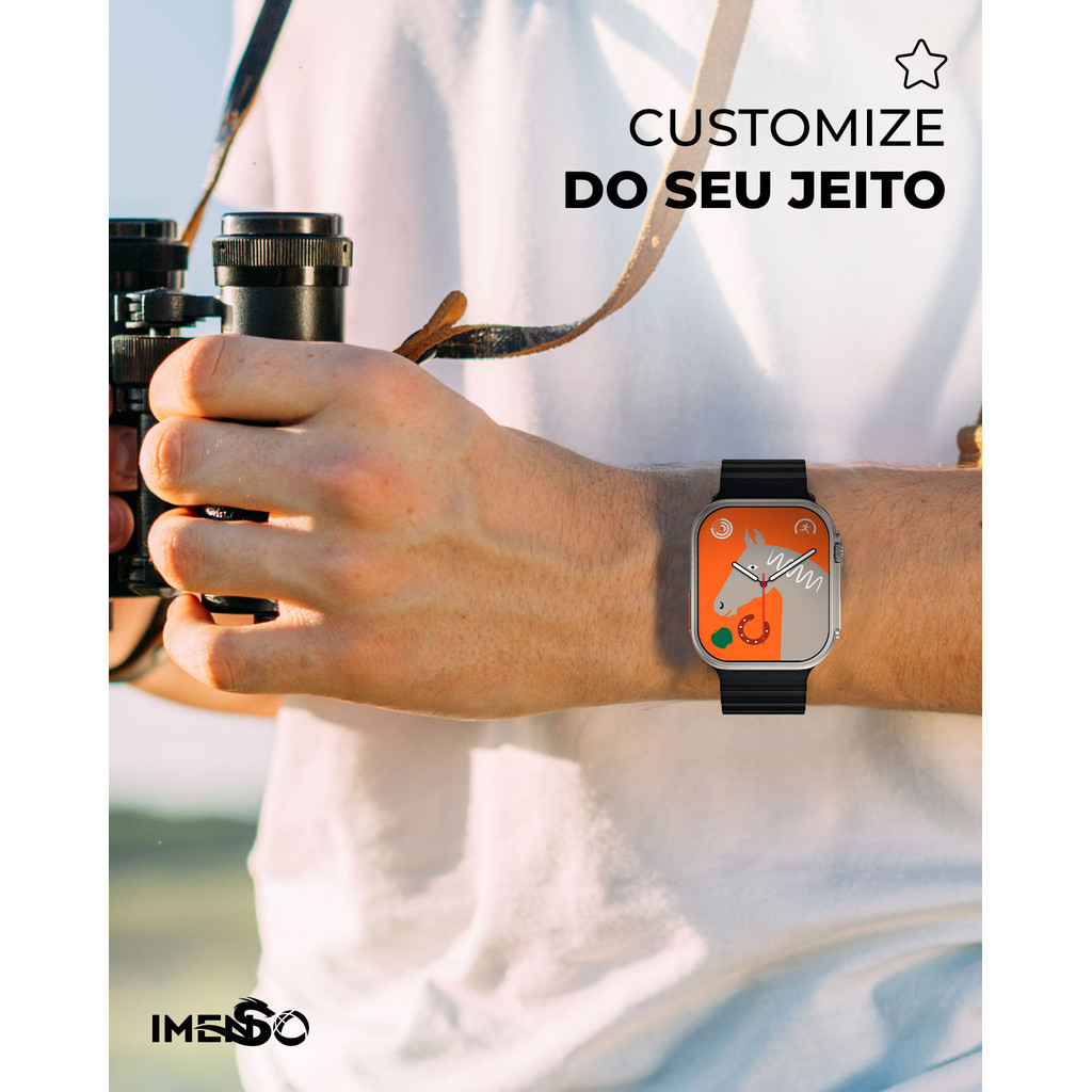 Construção Premium e Durável O smartwatch IMS753 é projetado com uma construção robusta, utilizando materiais de alta qualidade que garantem resistência e longevidade. Este relógio é perfeito para quem busca elegância e durabilidade em todas as situações. Alertas Instantâneos Receba notificações em tempo real diretamente na tela do seu smartwatch IMS753. Chamadas, mensagens e alertas de aplicativos chegam ao seu pulso, mantendo você sempre informado sem precisar pegar o celular. Câmera Integrada Capture momentos espontâneos com a câmera embutida do IMS753. Tire fotos e grave vídeos com facilidade, diretamente do seu relógio, sempre pronto para registrar as melhores lembranças. Monitoramento Cardíaco Preciso Acompanhe sua saúde com o monitoramento contínuo de batimentos cardíacos do IMS753. Mantenha-se informado sobre sua condição física ao longo do dia e cuide da sua saúde com dados detalhados. Carregamento Sem Fio Prático Diga adeus aos cabos. O IMS753 oferece carregamento sem fio, permitindo que você simplesmente coloque o relógio na base para recarregar a bateria, garantindo conveniência e facilidade no uso. Função de Clima Integrada Com o IMS753, você tem acesso às condições meteorológicas diretamente no seu pulso. Acompanhe as previsões do tempo em tempo real e planeje suas atividades diárias com facilidade. Comandos de Voz Controle seu smartwatch e outros dispositivos de maneira simples com o assistente de voz do IMS753. A interação por voz torna o uso mais intuitivo e eficiente. Modo Esportivo Completo O IMS753 é ideal para quem pratica esportes, oferecendo um modo esportivo que monitora seu desempenho em diversas atividades. Corra, pedale, ou caminhe, e acompanhe seus resultados com precisão. Tela Ampla de 49mm O IMS753 possui uma tela generosa de 49mm, proporcionando uma experiência visual clara e envolvente. Todos os detalhes ficam visíveis em um único olhar. Smartwatch IMS753 - Funcionalidade e Estilo em um Único Dispositivo Com sua construção premium, notificações instantâneas, câmera integrada, monitoramento cardíaco, carregamento sem fio, função de clima, comandos de voz, modo esportivo e uma tela ampla de 49mm, o IMS753 é a escolha perfeita para quem deseja unir tecnologia, estilo e praticidade em um único acessório. Funções: Bússola Integrada: Explore o mundo com confiança, sempre sabendo a direção correta. Monitoramento Cardíaco: Acompanhe seu ritmo cardíaco em tempo real para otimizar seus treinos e cuidar da saúde. Conectividade Instantânea: Receba notificações de mensagens, chamadas e aplicativos diretamente no pulso, mantendo você informado a todo momento. Modo Esportivo Avançado: Registre métricas precisas para corrida, ciclismo, natação, entre outros, incentivando um estilo de vida ativo. Chamadas por Bluetooth: Atenda chamadas com facilidade diretamente do pulso, aproveitando a conexão Bluetooth integrada. Assistente de Voz Integrado: Controle seu smartwatch com comandos de voz intuitivos, facilitando o acesso a informações e funcionalidades. Conectividade Ampliada: Integração perfeita com outros dispositivos (Android, IOS..) e serviços, proporcionando uma experiência completa e eficiente. Itens Inclusos: 1x Relógio Smartwatch Imenso IMS753 1x Pulseira de Instalação 1x Cabo de Carregamento sem Fio 1x Manual do Usuário