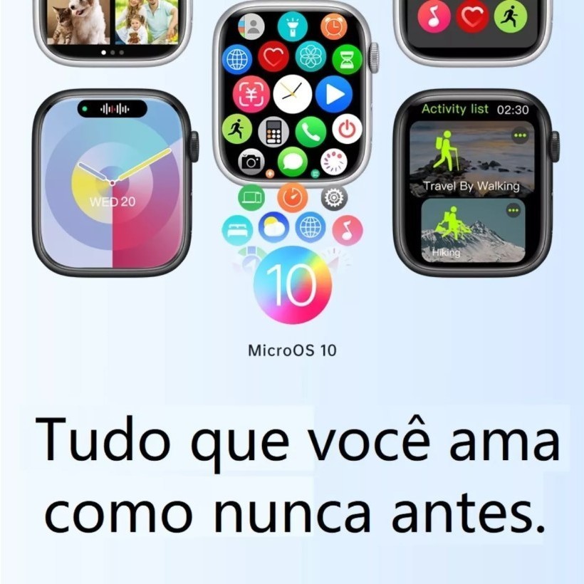 SMARTWATCH LANÇAMENTO W99+ Pro 45mm TELA SUPER AMOLED• *Especificações e novidades no novo sistema MicrOs 10* •Relógio Masculino e Feminino. Tamanho de 45mm • ILHA DINÂMICA que exibe notificações, chamadas e músicas tocadas em seu Smart. • Chat GPT, mostra pequenas respostas diretamente na tela do smartwatch. • Personalize o Menu e Player musical com uma foto da galeria. • Bússola integrada. • MEMÓRIA INTERNA para UPLOAD de LIVROS para leitura E MÚSICAS para ouvir SEM PRECISAR DO CELULAR PAREADO ao dispositivo. • Bluetooth independente para conectar o fone de ouvido bluetooth ao smart sem precisar do celular pareado ao dispositivo. • GPS (integrado ao APP) dinâmico no monitoramento de atividades ao ar livre (veja o trajeto direto do seu pulso). • Armazenamento de fotos no smartwatch. *DISPONÍVEIS EM 3 CORES:* • CHUMBO com pulseira PRETA com pulseira Oceano Meia Noite • PRATA com pulseira BRANCA • ROSE GOLD com pulseira ROSA *ACESSÓRIOS INCLUSOS NA COMPRA* • 1 Smartwatch W99+ Pro 45mm TELA SUPER AMOLED • 1 Pulseira Lisa de Silicone • 1 Cabo de carregador por indução Wireless • 1 Manual do Usuário. • 1 Pelicula 3D de Proteção - Tam 45mm *CARACTERÍSTICAS* • Tamanho de 45mm (tamanho único) • Possui trava na pulseira • Compatível com sistema Android e iOS • Faz e recebe ligações via bluetooth • Troca Pulseiras (Compatível com pulseiras no tamanho 42/44/45/49) • Coroa giratória funcional e integrativa ao sistema •Tela infinita HD com alta resolução • Display 1,95” • Bloqueio de tela por senha • Diversas opções de idiomas, inclusive português BR • Bateria com Autonomia de até 2 dias (dependendo do uso) • APP utilizado: MACTive Pro *MAIS FUNÇÕES DO SMARTWATCH* • Recebe mensagens do Whatsapp • Recebe mensagens de Redes Sociais • Modo de jogos dinâmicos • Personalize o protetor de tela com uma foto ou vídeo de sua galeria • GPS com localização em tempo real (integrado no App) • Opções de planos de fundo disponíveis no app • Chamada SOS de emergência • Analise de saúde semanal no app • Controle remoto da câmera do celular • Music Player com memória interna e bluetooth independente, conecte seu fone diretamente ao seu smart • Agenda telefônica (salve seus contatos) • Bloqueio de tela com senha (proteja seus dados) • Monitor de esportes com GPS dinâmico e ícones animados • Monitor de saúde (pressão, oxigenação, batimentos e temperatura) • Monitoramento do sono • Monitoramento dos passos • Monitoramento de calorias gastas, distância, tempo e passos durante o treino • Monitoramento da saúde da mulher (período fértil, ciclo menstrual e gestação) • Lembrete sedentarismo • Lembrete para tomar água • Abas de atalhos rápidos na página inicial (personalize com as funções que mais utiliza) • Modo noturno (não perturbe) • Calculadora • Lanterna • Abajur • Modo massagem • Clima tempo • Treino de respiração/antiestresse e ansiedade • Assistente de voz • Cronômetro • Controle remoto da câmera do celular • Contagem regressiva • Despertador *RECOMENDAÇÕES E OBSERVAÇÕES FINAIS* 1. Compatível com Android 4.4 e acima, IOS 9.0 e acima 2. Não utilize carregadores superiores a voltagem 5V/1A. Não utilizar carregadores de carga rápida (turbo) ou superior ao indicado. 3. Se a tomada for 220v utilizar carregador bivolt, ou carregar o produto via USB. 4. Os dados não devem ser utilizados como referência médica. 5. O relógio NÃO é a prova d’água, ele é RESISTENTE á Água. Pode lavar a mão, lavar a louça, pegar chuva. Não aconselhado para tomar banho e mergulhos. 7. MANTENHA em seu Smartwatch os SELOS que se encontram na parte de trás do produto, isso garante a AUTENTICIDADE e GARANTIA. Não espere mais, vista o futuro em seu pulso! Fique à vontade para fazer qualquer pergunta referente ao produto. Nós ficaremos contentes em responder! Desejamos excelentes compras!