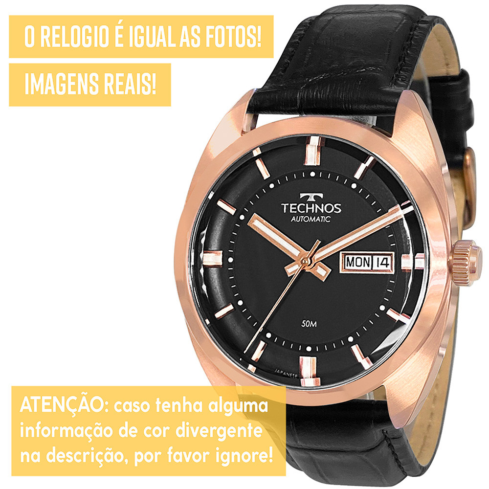 Relógio Technos Automático Masculino Rosê Gold Original Luxo