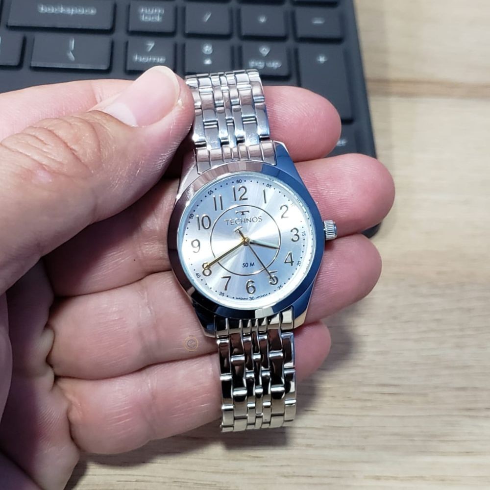 SOBRE A EMPRESA: Somos a Relógios Campana, uma empresa especializada em vendas online, revendedora autorizada das maiores marcas do mercado. Trabalhamos apenas com relógios originais com garantia de fábrica. Comprando conosco você tem a segurança que receberá seu produto nas seguintes condições: => REVENDEDOR AUTORIZADO => PRODUTO ORIGINAL => GARANTIA DO FABRICANTE => PRODUTO NOVO => EMBALAGEM ORIGINAL DO PRODUTO => MANUAL DE INSTRUÇÕES => CERTIFICADO DE GARANTIA => NOTA FISCAL => RELÓGIO A PRONTA-ENTREGA SOBRE O PRODUTO: Relógio Technos Feminino Boutique, com caixa e pulseira de aço. Este modelo foi feito para mulheres que gostam de relógios pequenos e sofisticados. Especificações: Marca: Technos Modelo: 2035MJES/1B Tipo de relógio: Analógico Gênero: Feminino Cor da caixa: Prateado Cor da pulseira: Prateado Estilo: Casual Alarme: Não Cronômetro: Não Calendário: Não Luz: Não Resistência à água: Sim – 5 ATM = 50 metros Tipo de fecho: Dobrável, com trava lateral Material da caixa: Aço Inoxidável Material da pulseira: Aço Inoxidável Características do vidro: Cristal Mineral Tamanho da caixa: 32 mm Espessura da caixa: 10 mm Comprimento da pulseira: 22 cm Largura da pulseira: 15 mm Tampa do fundo: Pressão Peso: 73 Gramas Alimentação: Bateria Conteúdo da Embalagem: Relógio, nota fiscal, certificado garantia e manual de instruções Garantia do Fabricante: 12 meses Fabricante: Technos da Amazônia Ind e Com S/A Ficou alguma dúvida? Estamos à disposição pelo campo de mensagens!