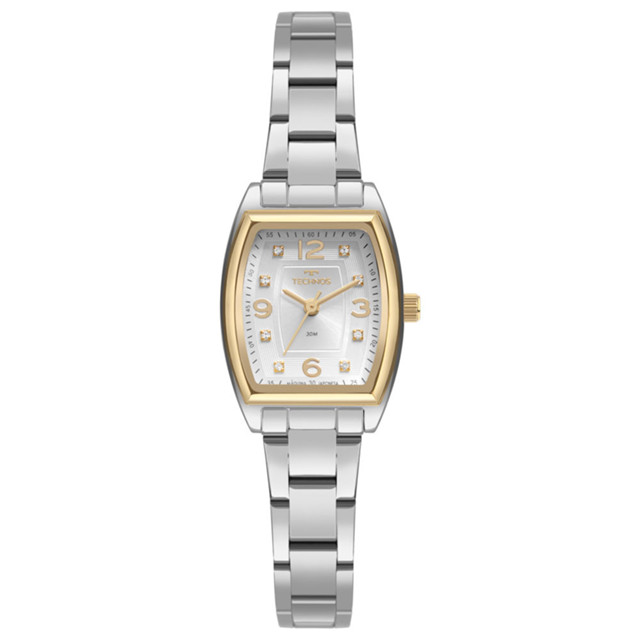 Relógio Technos Mini em sua extensão de linha de modelo best-seller, agora com uma elegante caixa em formato de barril. Seu mostrador possui numeração arábica nas posições de 3/6/9/12h e aplicação de pedras nos demais marcadores de hora, além da marcação de minutos/segundos no aro interno. Produto 100% em aço inoxidável, com máquina quartz Japonesa Miyota e resistência à água de 50 metros.