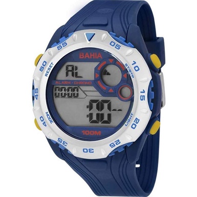 Compre o Relógio Technos Masculino Bahia BFC13602/8A na Eclock, a maior loja de relógios do Brasil! Vamos conhecer um pouco mais sobre o produto? Possui mecanismo Digital, a pulseira é na cor Azul, fabricada em Silicone, com 26 cm de comprimento e possui Fecho Fivela. A Caixa (peça onde fica o mostrador) é fabricada em Poliuretano, mede 4,8 cm de diâmetro, sem considerar a coroa, e 1,4 cm de espessura, o que é considerado tamanho Grande para relógios do gênero Masculino. O Relógio Technos Masculino Bahia BFC13602/8A tem nível de resistência à água especificado em 10 ATM. Com relação as funções adicionais do relógio: possui Calendário Digital, Cronômetro Digital, Um Alarme Diário, Timer, Não possui função de Aviso de Hora Cheia (Função Chime), Iluminação de Fundo. É Fabricado por Technos da Amazonia Indústria e Comércio. CNPJ: 04628426/0001-45 e tem Garantia de 1 Ano com o Fornecedor.