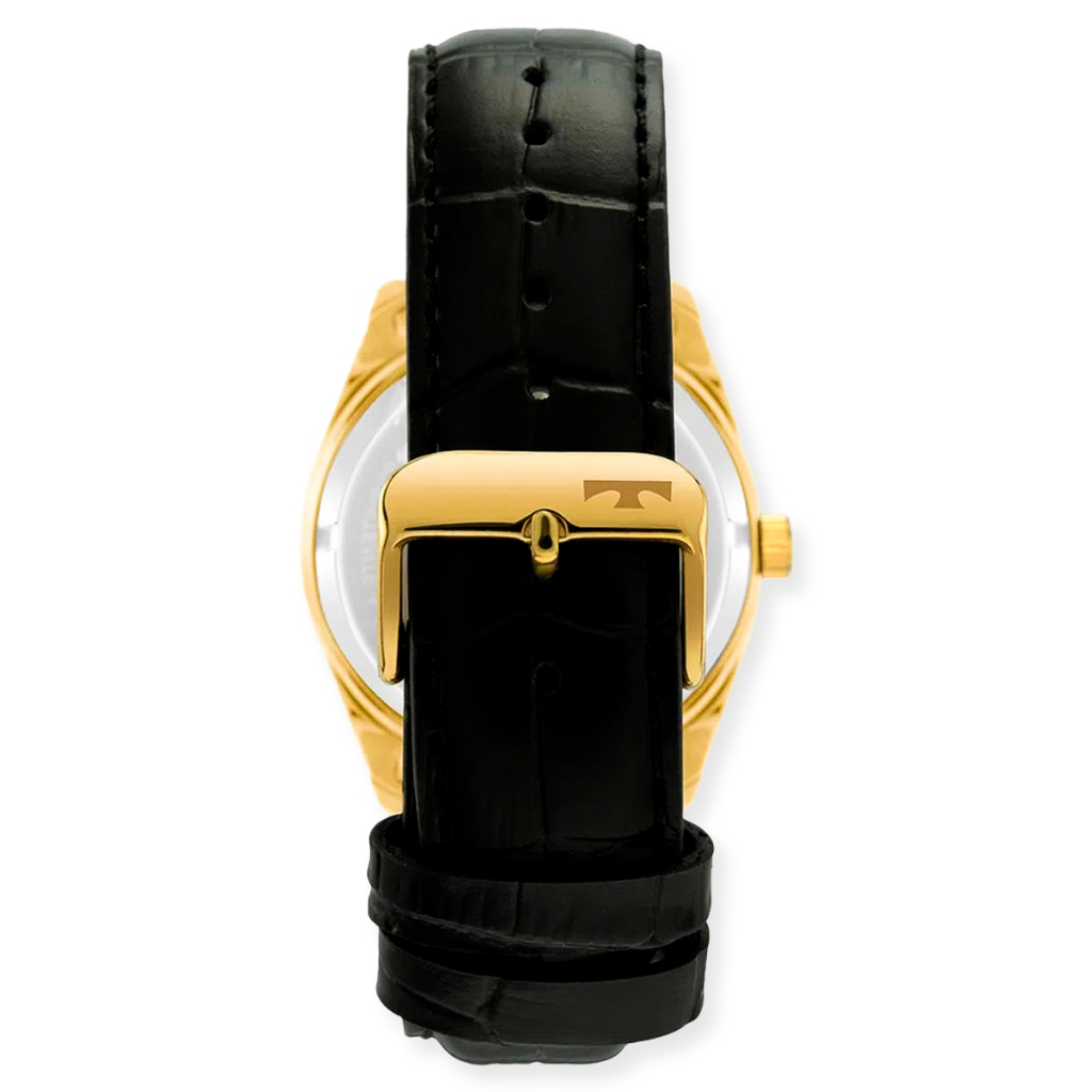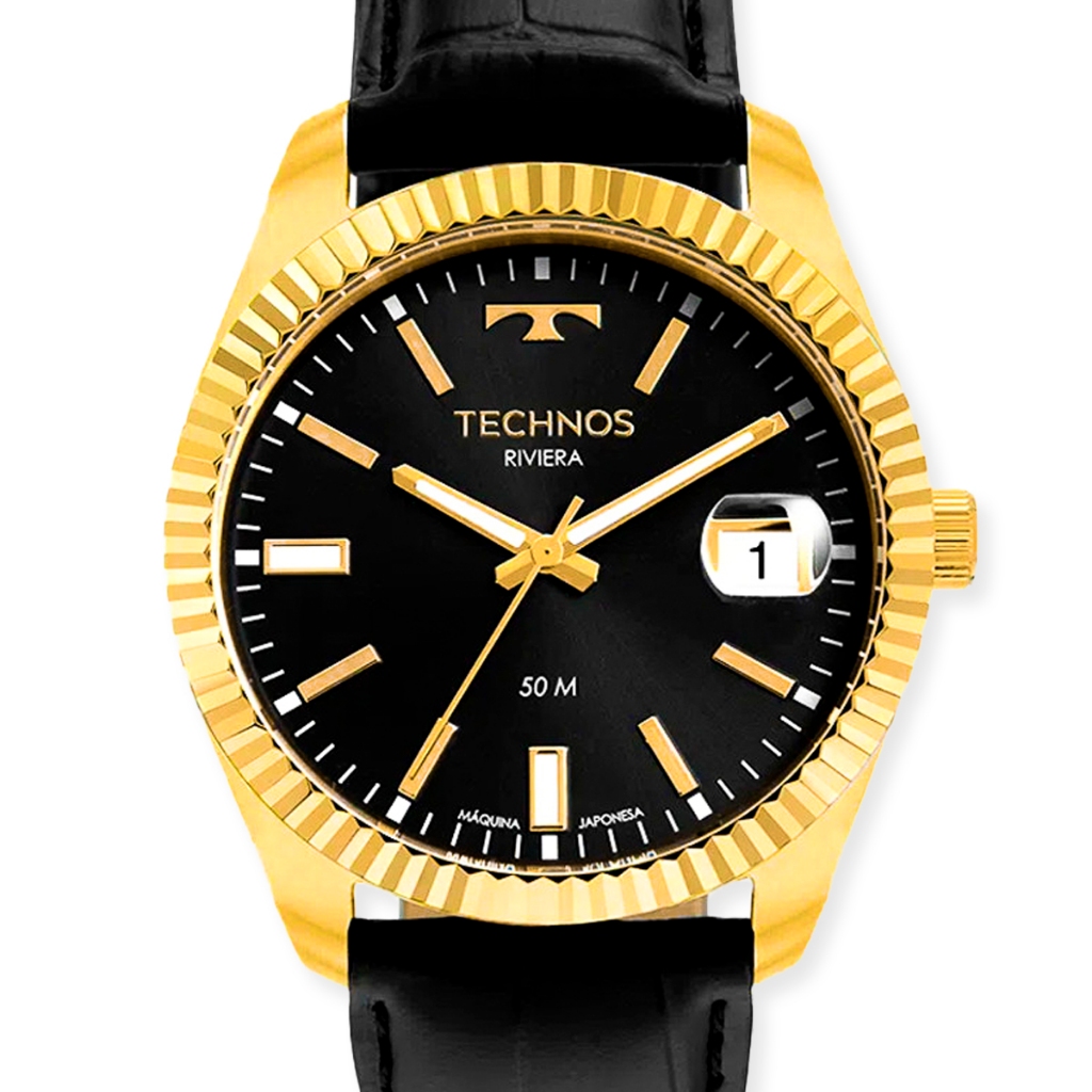 Especificações Técnicas Marca: Technos Referência: 2415DK/0P Gênero: Masculino Cor da Pulseira: Preta Cor da Caixa: Dourada Material da Pulseira: Couro Material da Caixa: Aço inoxidável com banho dourado Tamanho da Caixa: 43 mm Resistência à Água: 50 metros (5 ATM) Tipo de Movimento: Analógico (Quartzo) Vidro: Cristal mineral