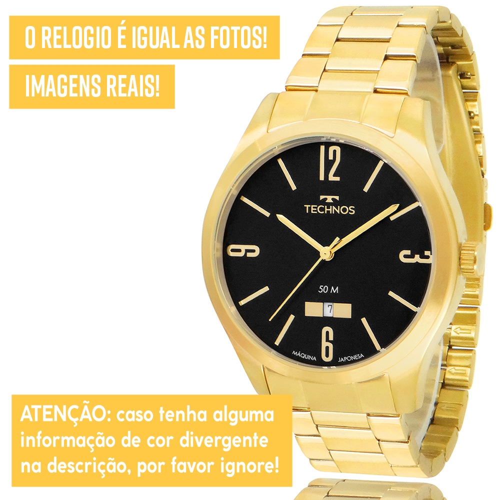 Relógio Technos Masculino Dourado Preto Original 1 Ano de Garantia
