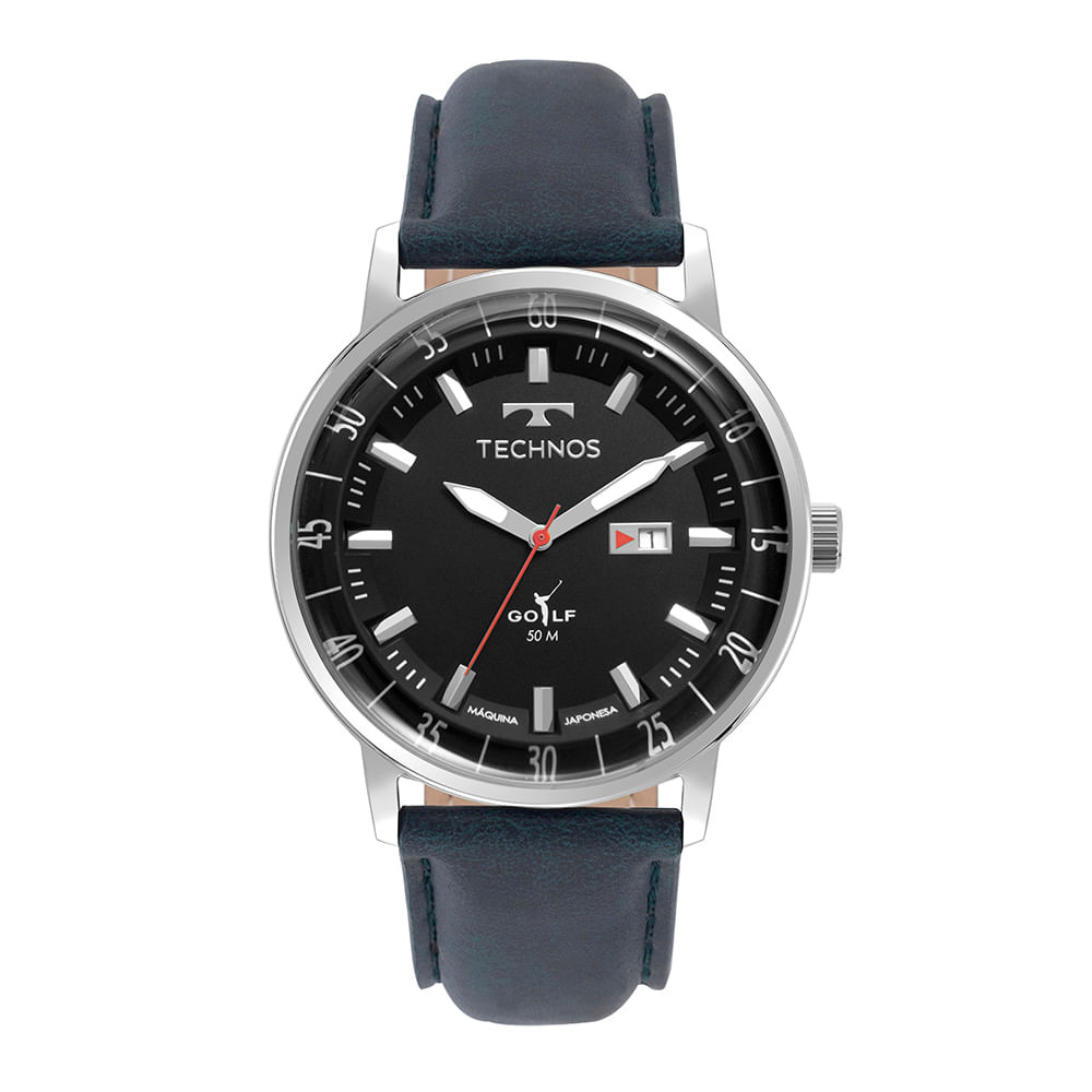 Relógio Technos Masculino Golf Prata - 2115TXQ/0A Relógio Technos Golf com vidro abaulado e elegante pulseira de couro legitimo na cor azul. Seu mostrador preto apresenta aro interno com marcação dos minutos e assinatura de linha diferenciada. Produto 100% em aço inoxidável, com máquina quartz japonesa Miyota, calendário e resistência à água de 50 metros. • Tamanho da Caixa: 46mm • Cor do Mostrador: Preto • Material da Pulseira: Couro • Cor da Pulseira: Azul • Movimento: Analógico • Autenticidade: Produto 100% original com garantia de fábrica • Conteúdo da Embalagem: Relógio, manual e certificado de garantia • Garantia: 12 meses Compre este lindo Relógio na Loja Oficial da Technos na Shopee com a segurança que só uma Loja de Fábrica pode oferecer. LOJA DE FÁBRICA – PRONTA ENTREGA COM ENVIO IMEDIATO.