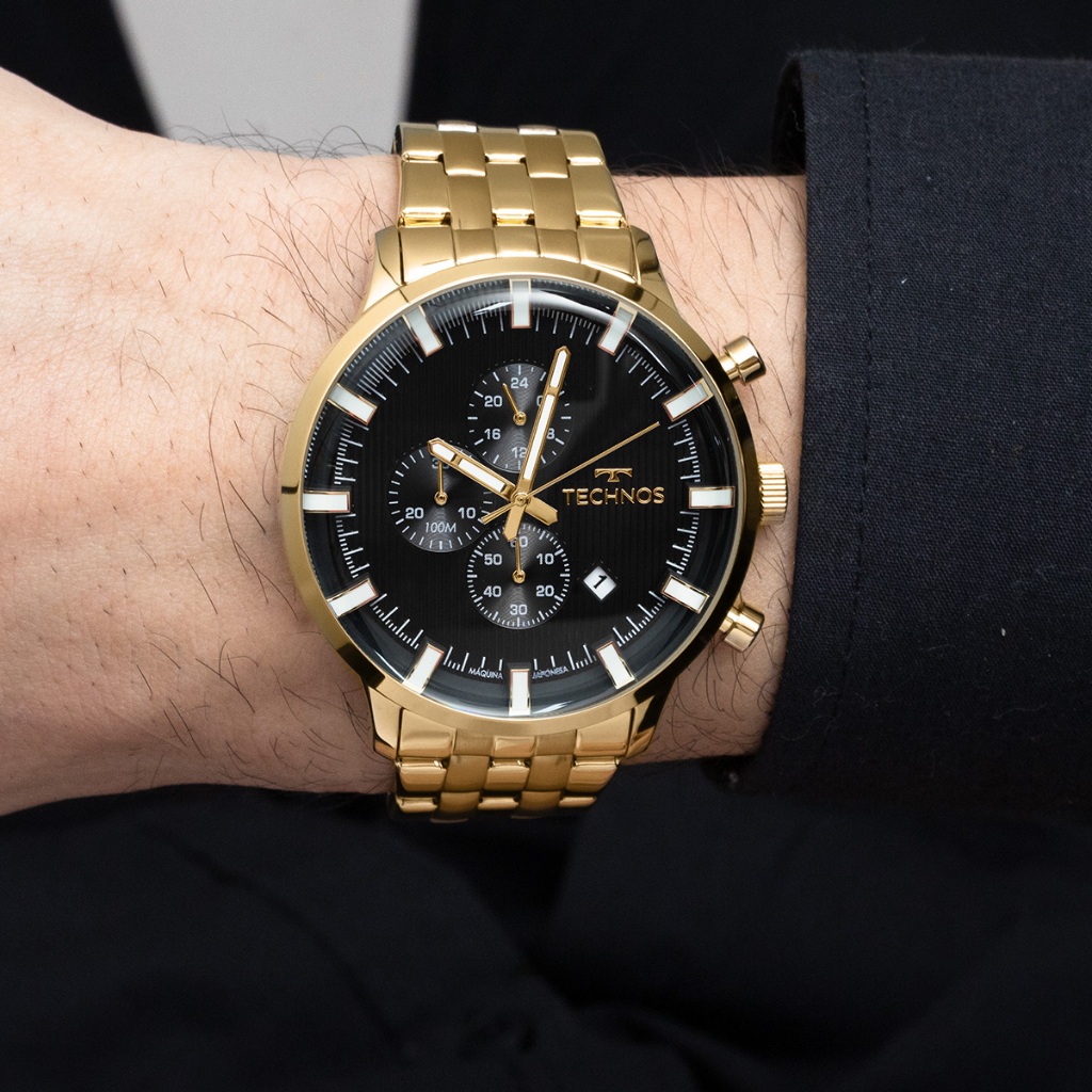 Compre o Relógio Technos Masculino Grandtech JS15ENQ/1P na Eclock, a maior loja de relógios do Brasil! Vamos conhecer um pouco mais sobre o produto? Possui mecanismo Analógico, a pulseira é na cor Dourado, fabricada em Aço, com 28 cm de comprimento e possui Fecho Dobrável com Trava. A Caixa (peça onde fica o mostrador) é fabricada em Aço, possui fundo do tipo Rosqueado, mede 4,5 cm de diâmetro, sem considerar a coroa, e 1,3 cm de espessura, o que é considerado tamanho Grande para relógios do gênero . O Relógio Technos Masculino Grandtech JS15ENQ/1P tem nível de resistência à água especificado em 10 ATM. Com relação as funções adicionais do relógio: possui Calendário Analógico com Data, Cronógrafo Analógico, Marcadores com Illuminator. É Fabricado por Technos da Amazonia Indústria e Comércio. CNPJ: 04628426/0001-45 e tem Garantia de 1 Ano com o Fornecedor.