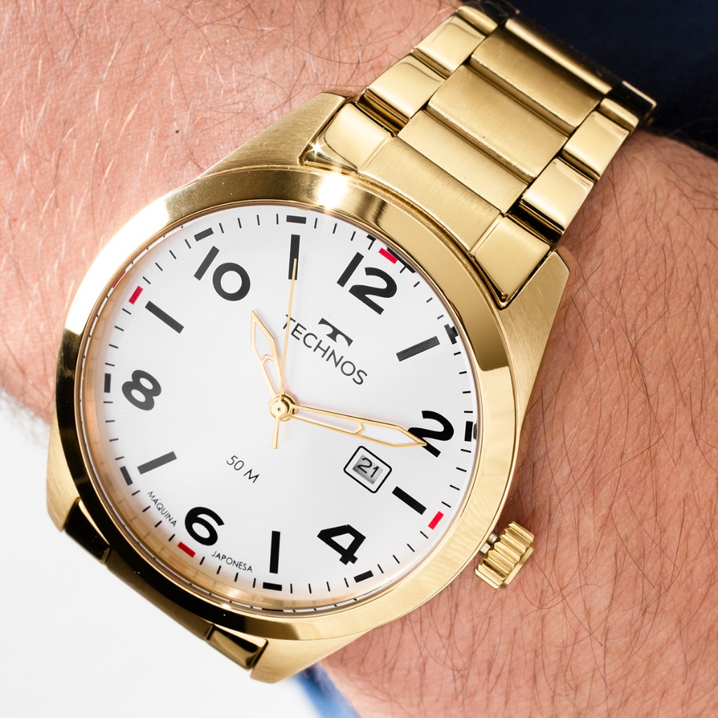 Compre o Relógio Technos Masculino Militar 2115TYQ/1K na Eclock, a maior loja de relógios do Brasil! Vamos conhecer um pouco mais sobre o produto? Possui mecanismo Analógico, a pulseira é na cor Dourado, fabricada em Aço, com 24 cm de comprimento e possui Fecho Dobrável com Dois Botões. A Caixa (peça onde fica o mostrador) é fabricada em Aço, possui fundo do tipo Pressão, mede 4,2 cm de diâmetro, sem considerar a coroa, e 1,0 cm de espessura, o que é considerado tamanho Médio para relógios do gênero Masculino. O Relógio Technos Masculino Militar 2115TYQ/1K tem nível de resistência à água especificado em 5 ATM. Com relação as funções adicionais do relógio: possui Calendário Analógico com Data e Marcadores com Illuminator. É Fabricado por Technos da Amazonia Indústria e Comércio. CNPJ: 04628426/0001-45 e tem Garantia de 1 Ano com o Fornecedor.