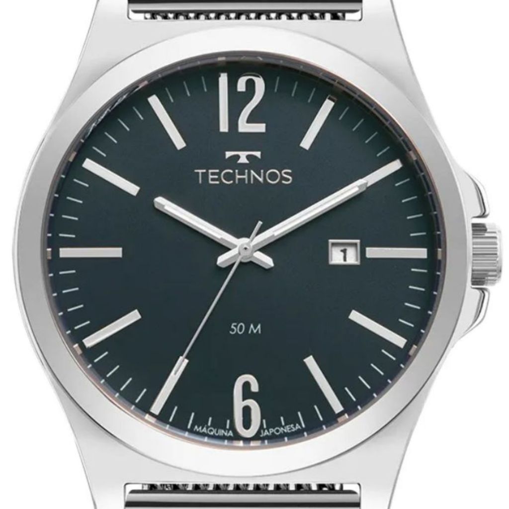 Especificações Técnicas: Marca: Technos Referência: 2115NCY1A Gênero: Masculino Cor da Caixa: Prata Cor da Pulseira: Prata Material da Caixa: Aço inoxidável Material da Pulseira: Aço inoxidável (malha mesh) Tamanho da Caixa: 43 mm Resistência à água: 50 metros / 5 ATM Tipo de movimento: Analógico (quartzo Miyota) Características do vidro: Cristal mineral Cor do mostrador: Azul