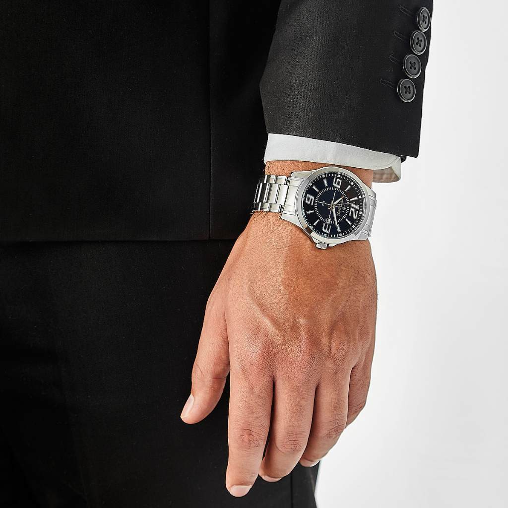 Relógio Technos Gênero: Masculino Tamanho: Grande Funções - Analógico - Calendário dia do mês Características - Bateria - Coroa: Simples - Tampa posterior: Rosqueado - Resistência à água: 50m - Não recomendado para banhos de chuveiro pois o vapor danifica as borrachas de vedação - Vidro: Cristal Mineral - Mostrador AZUL - Material da caixa: Aço - Material da pulseira: Aço Medidas - Diâmetro da caixa: 4,8 cm - Espessura da caixa: 1 cm Acompanha - Manual - Embalagem Technos - Garantia de 1 ano