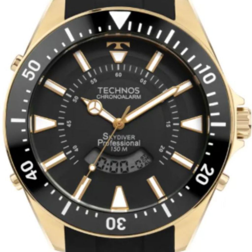 Especificações Técnicas: Marca: Technos Referência: WT2050AH2P Gênero: Masculino Cor da Pulseira: Preto Cor da Caixa: Dourado Material da Pulseira: Silicone Material da Caixa: Aço inox Tamanho da Caixa: 50 mm Resistência à água: 15 ATM (150 metros) Tipo de movimento: Anadigi (Analógico + Digital / Quartzo) Características do vidro: Cristal mineral