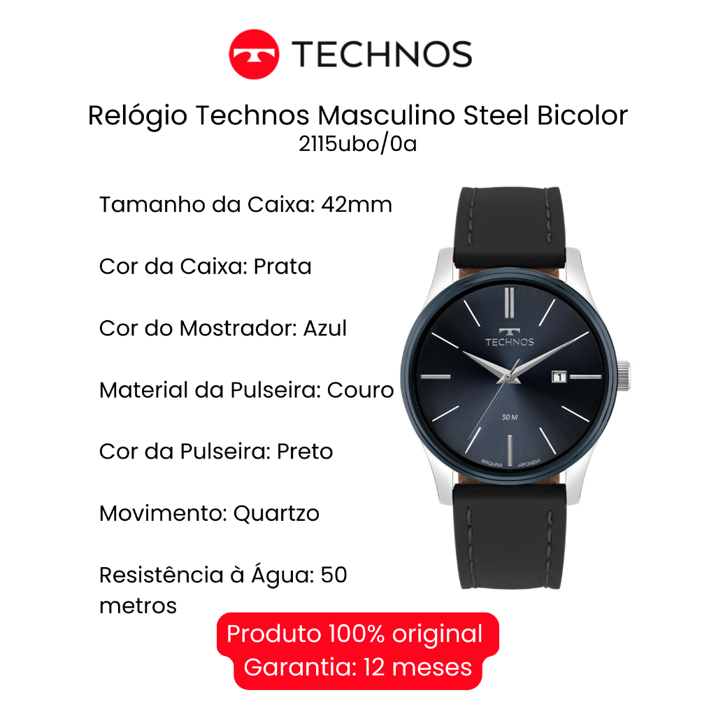 • Tamanho da Caixa: 42mm • Cor do Mostrador: Azul • Material da Pulseira: Couro • Cor da Pulseira: Preto • Movimento: Quartzo • Resistência à Água: Até 50 metros • Autenticidade: Produto 100% original com garantia de fábrica • Garantia: 12 meses