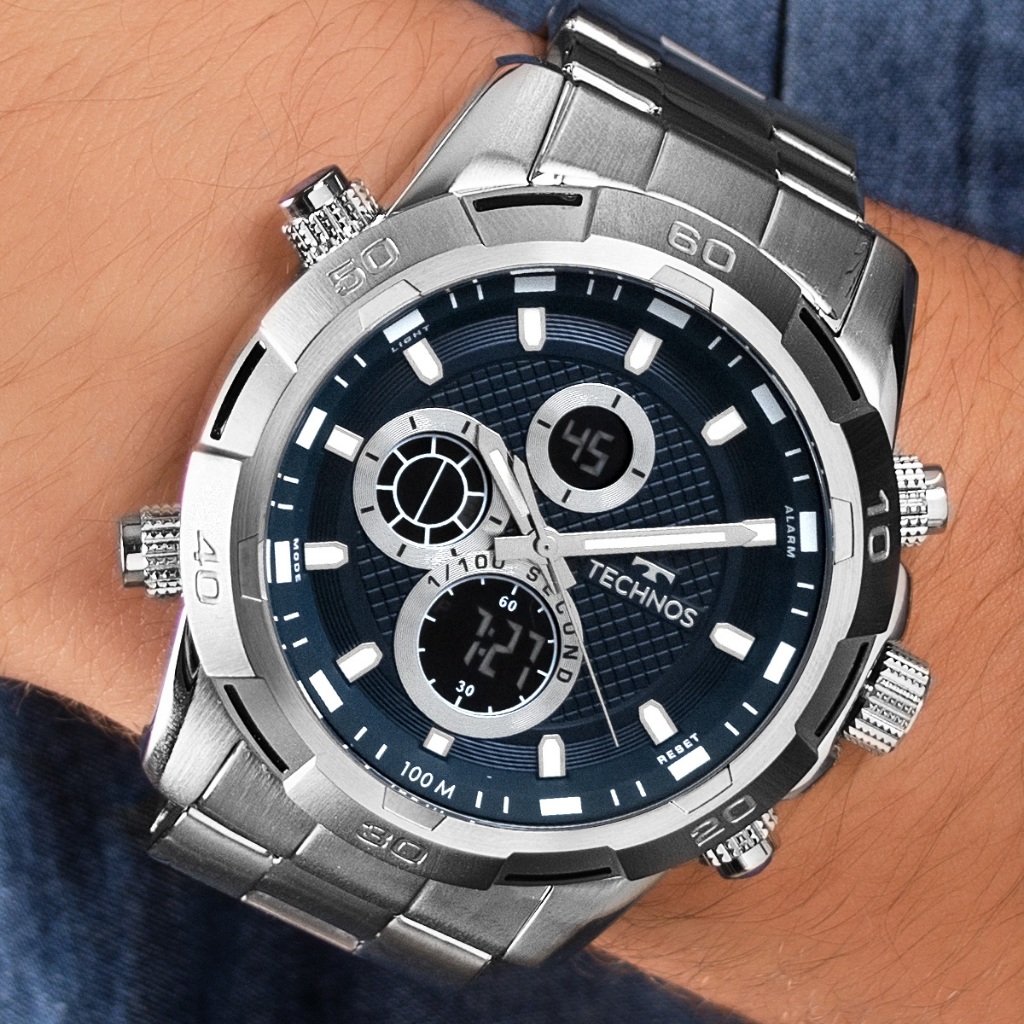 Compre o Relógio Technos Masculino Ts Digiana BJ4060AA/1A na Eclock, a maior loja de relógios do Brasil! Vamos conhecer um pouco mais sobre o produto? Possui mecanismo Analógico/Digital, a pulseira é na cor Prata, fabricada em Aço, com 25 cm de comprimento e possui Fecho Dobrável com Trava. A Caixa (peça onde fica o mostrador) é fabricada em Aço, possui fundo do tipo Rosqueada, mede 4,8 cm de diâmetro, sem considerar a coroa, e 1,6 cm de espessura, o que é considerado tamanho Grande para relógios do gênero Masculino. O Relógio Technos Masculino Ts Digiana BJ4060AA/1A tem nível de resistência à água especificado em 10 ATM. Com relação as funções adicionais do relógio: possui Calendário Digital, Cronômetro Digital, Um Alarme Diário e Iluminação de Fundo. É Fabricado por Technos da Amazonia Indústria e Comércio. CNPJ: 04628426/0001-45 e tem Garantia de 1 Ano com o Fornecedor.