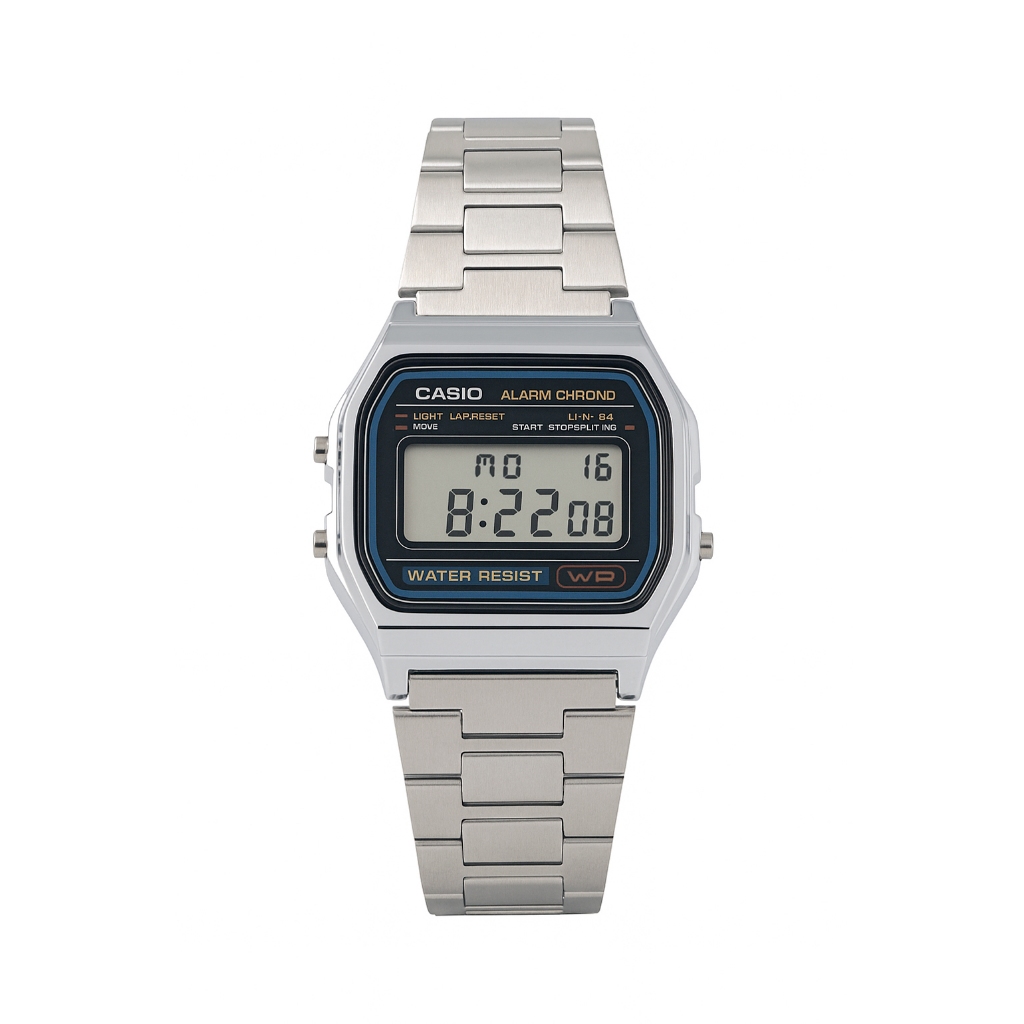 Relógio Unissex Casio Digital Esportivo A158wa-1df Prata Retrô Vintage Pulseira em Aço Inoxidável
