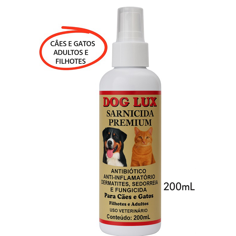 Remédio Sarna para cães e gatos Sarnicida Antifúngico Dermatites Seborréia Spray 200ml Dog Lux