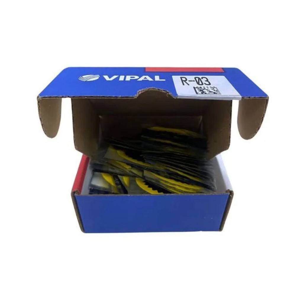 O remendo R-03 da Vipal é projetado para reparos em câmaras de ar de pneus de diversos veículos, como bicicletas, motocicletas, automóveis, caminhões e ônibus. Utilizando o sistema de vulcanização a frio (químico), ele evita a exposição das câmaras de ar ao calor, prolongando sua vida útil. Sua espessura extrafina e capacidade de expansão acompanham a elasticidade da câmara, prevenindo a formação de calosidades. Características Técnicas: Código: 345123 Descrição: Remendo R-03 Dimensão: 60 mm de diâmetro Indicado para danos de até: 6 mm Unidades por embalagem: 65 Para danos em formato de furo, recomenda-se que o remendo utilizado seja, no mínimo, 10 vezes maior que o diâmetro do dano. Ao optar pelo remendo R-03 da Vipal, você escolhe um produto durável e eficiente, ideal para a manutenção de câmaras de ar em diversas aplicações.