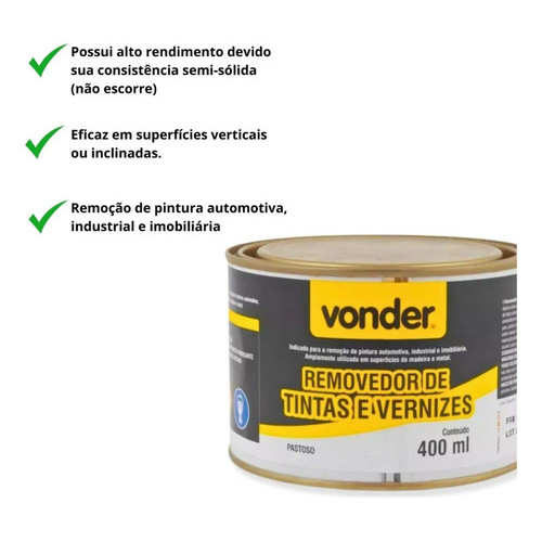 | Removedor De Tintas E Vernizes 400 Ml Vonder este produto | R$ 40,92 | 12% | 4.8/5 | — |