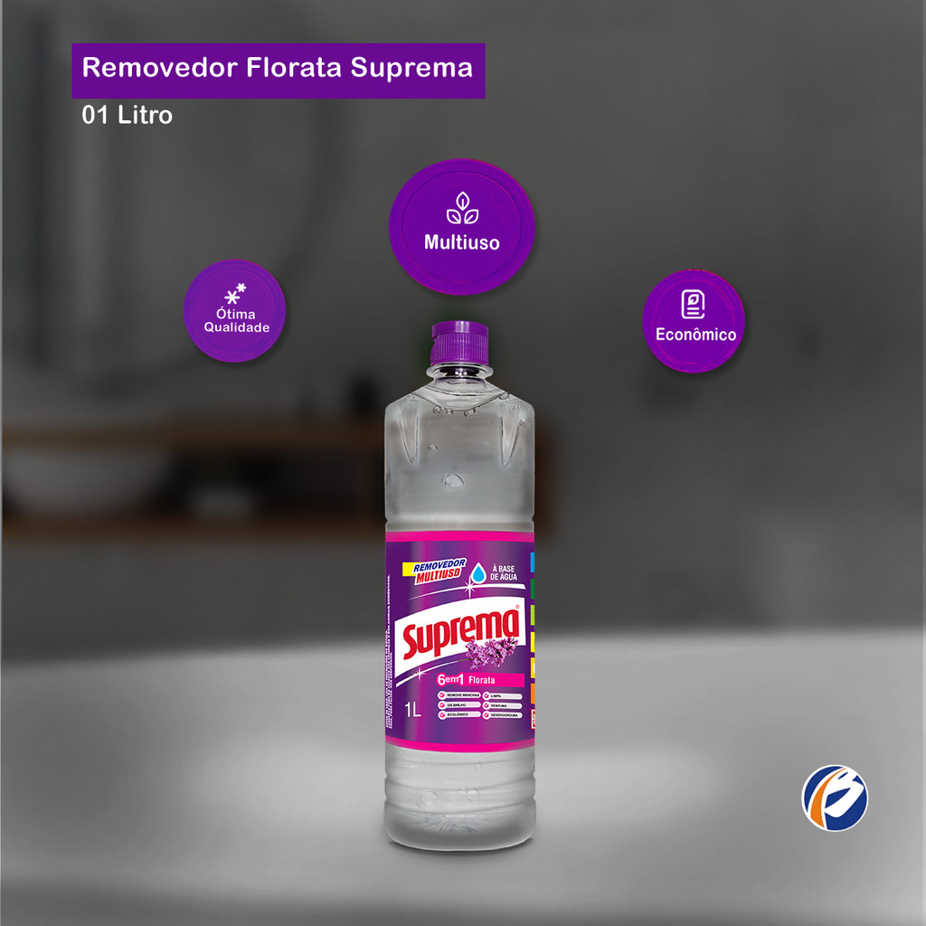Removedor Florata 1L Suprema Desenvolvido para remover sujeiras difíceis sem esforço, sua fórmula à base de água é biodegradável, tornando-o uma escolha ecologicamente responsável. Sua composição inclui butilglicol, um agente eficaz na remoção de sujeiras. Além disso, o removedor oferece benefícios adicionais, como brilho, perfume e desengorduramento, proporcionando uma limpeza completa e agradável. Indicação de Uso: - Ideal para diversas superfícies, como azulejos, metais, boxes e vidros. Modo de Uso: - Recomenda-se o uso de luvas durante a aplicação para proteger as mãos; - Sua aplicação é simples, basta aplicar o removedor puro em um pano seco e limpo, passar sobre a superfície desejada e aguardar a secagem. Fragrância: Florata PH: 6,0 a 8,0 (totalmente solúvel em água e não inflamável) Embalagem: 01 frasco de 1L