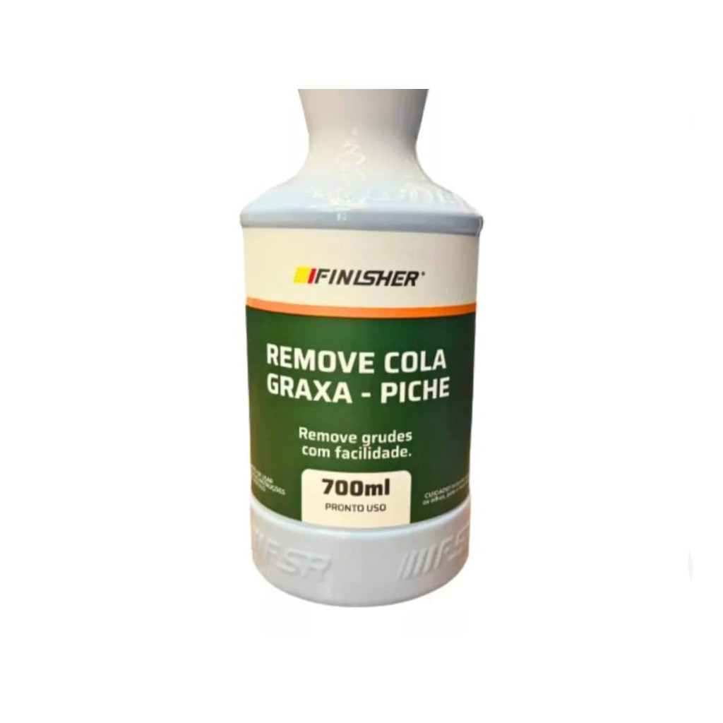 Contém 01 Removedor De Cola Graxa Piche 700 ml FinisherDESCRIÇÃOO Removedor De Cola, Graxa E Piche Finisher é um poderoso removedor desenvolvido para eliminar de forma eficaz uma ampla variedade de sujeiras, como colas, graxas, piche, adesivos, resíduos industriais e muito mais. Sua fórmula concentrada possui ingredientes biodegradáveis, que minimizam o impacto ambiental. De alto desempenho garantindo uma limpeza profunda e rápida, sem danificar superfícies.ESPECIFICAÇÕES TÉCNICAS- Tira Piche, Graxa, Cola e Adesivos- Limpeza Profunda- Volume: 700 ml- Peso: 800 g- Altura: 10 cm- Largura: 10 cm- Comprimento: 26 cmMODO DE USAR1 - Agite bem o frasco antes de usar.2 - Aplique o produto diretamente sobre a superfície suja.3 - Deize agir por alguns minutos, conforme a intensidade da sujeira.4 - Esfregue com uma escova ou esponja, se necessário.5 - Enxágue abundantemente com água.APLICAÇÕESIndicado para diversas superfícies, como metais, plásticos, vidros e borracha. Ideal para uso em diversas situações, como oficinas, indústrias, residências e automóveis.